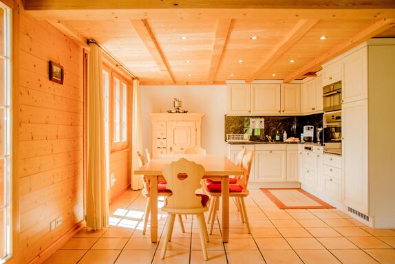 Die 4.5-Zimmerwohnung auf 130m2 im Dachgeschoss mit Galerie verfügt über ein Schlafzimmer mit Doppelbett, ein Schlafzimmer mit zwei Einzelbetten, ein Schlafzimmer mit Hochbett, einem Badezimmer mit Badewanne, Dusche und WC sowie ein Badezimmer mit Dusche und WC. Die gemütliche Wohnung bietet eine offene Küche und einen grosszügigen Wohn- und Essbereich mit Cheminée. Wunderbare Aussichten auf das Bergpanorama geniessen Sie vom grosszügigen Balkon aus.