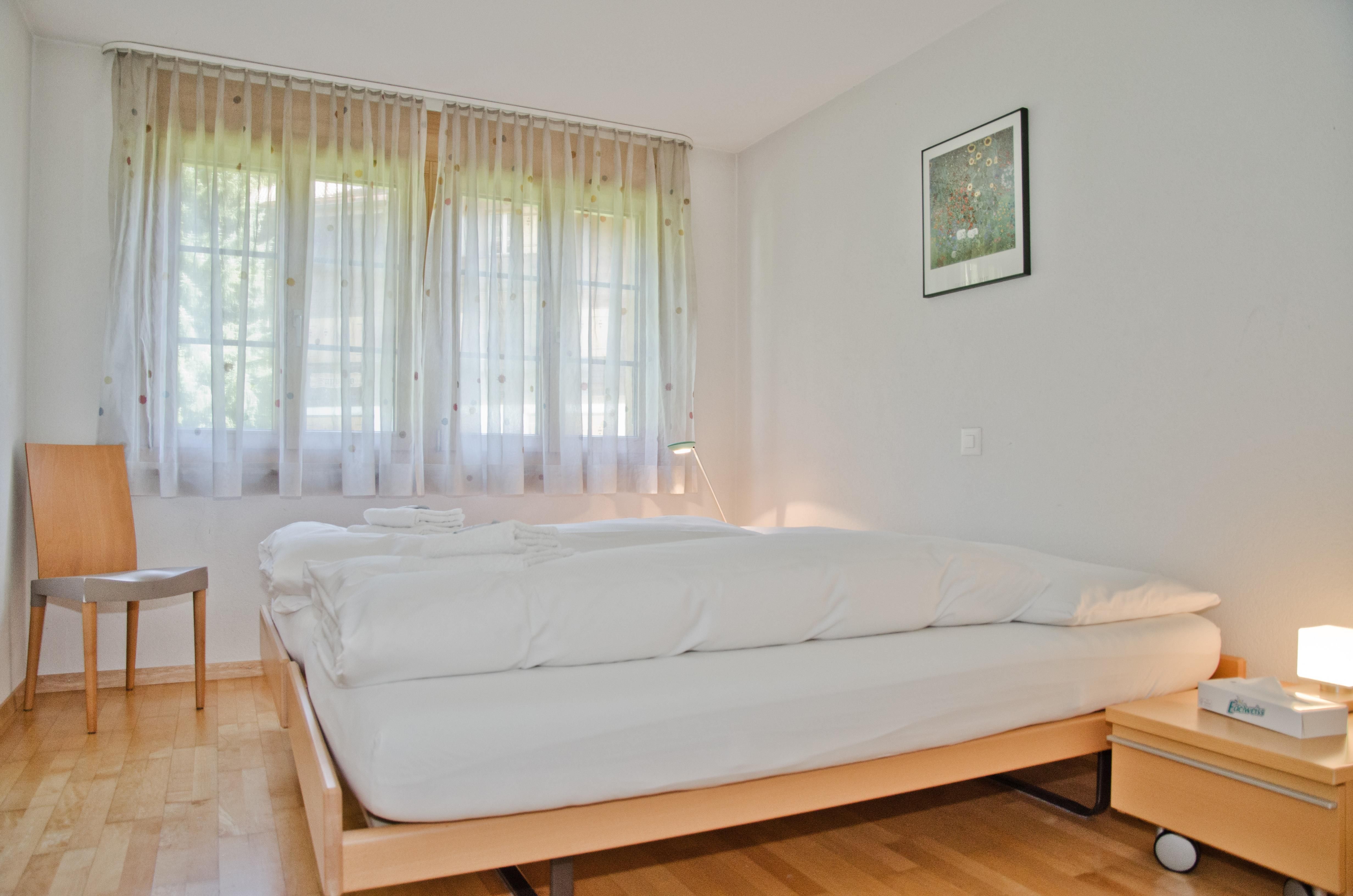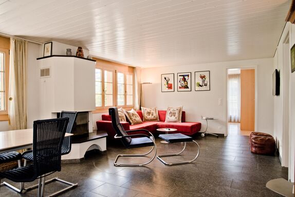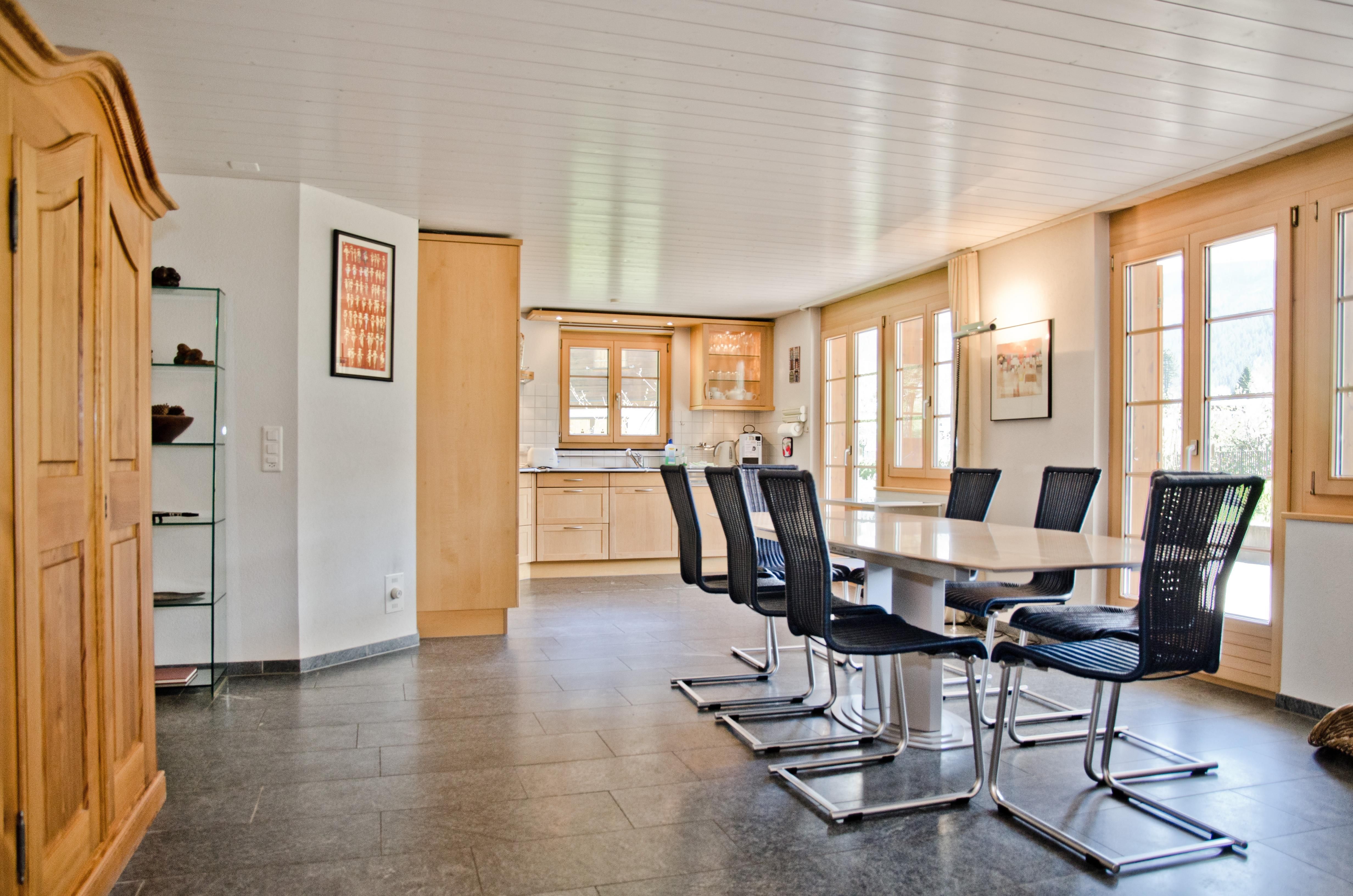 Sonnige Stunden auf der grosszügigen Terrasse mit einem tollen Blick auf die Eigernordwand geniessen Sie in der modernen 4.5-Zimmerwohnung im ersten Stock. Auf 96m2 befinden sich drei Schlafzimmer – ein Zimmer mit Doppelbett und zwei Zimmer mit Einzelbetten – sowie zwei Bäder mit Dusche und WC. Der gemütliche Wohn- und Essbereich mit Kamin und offener Küche bringt alle Voraussetzungen für entspannte Ferien.