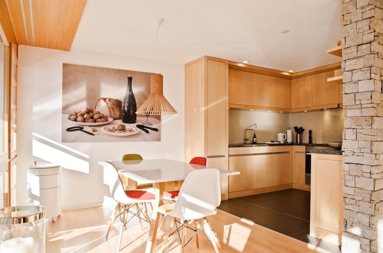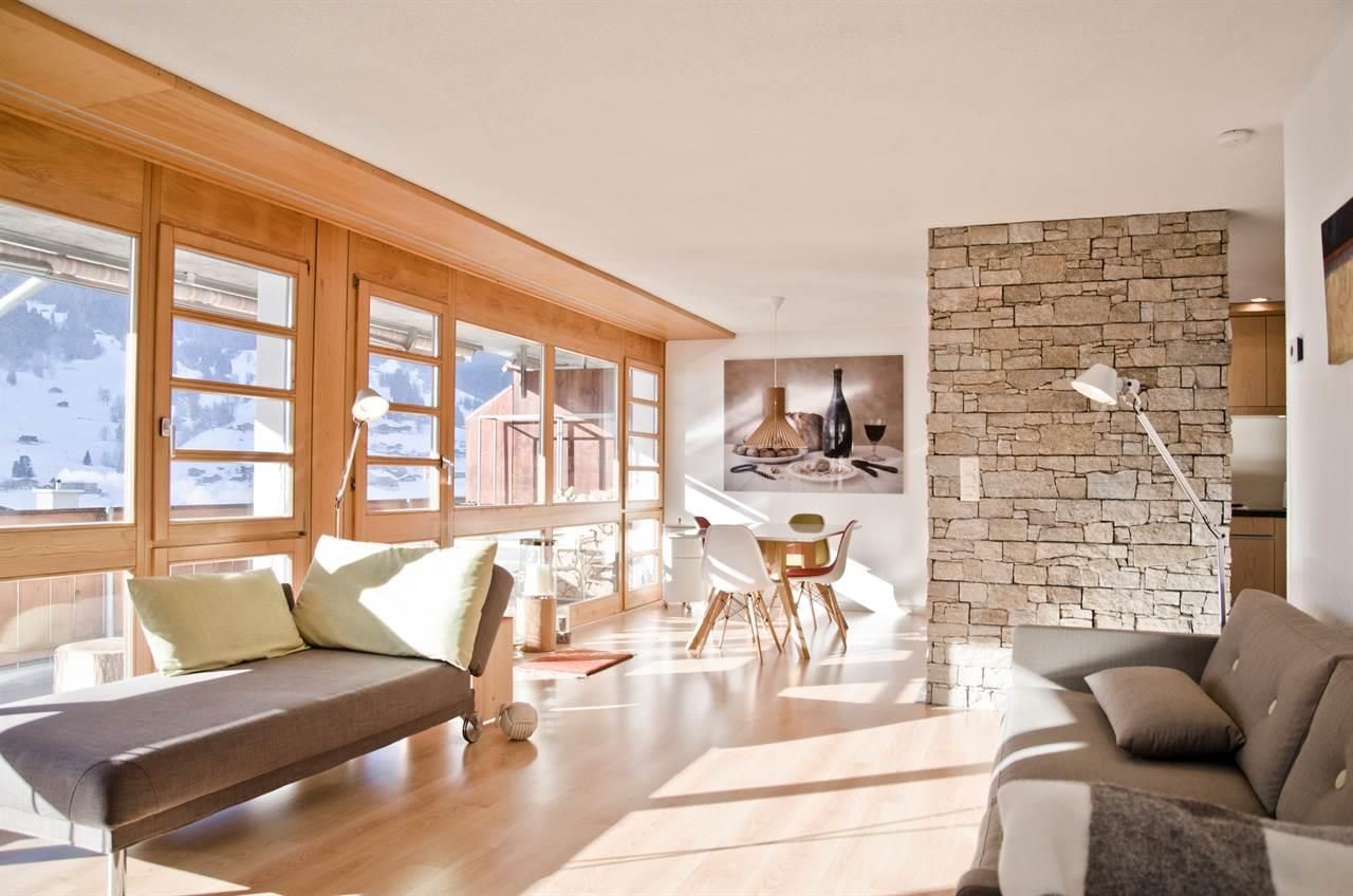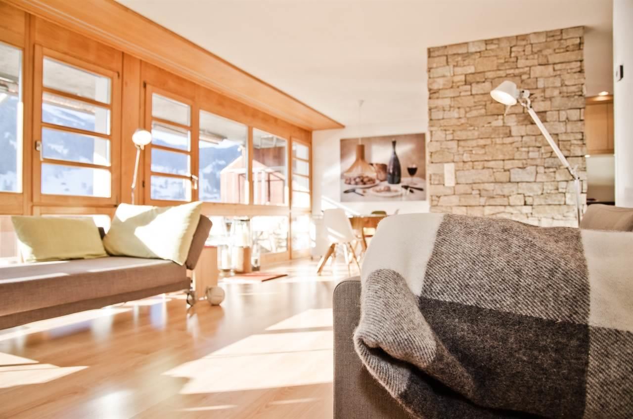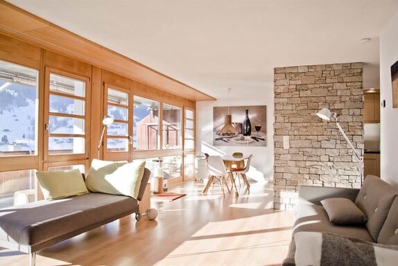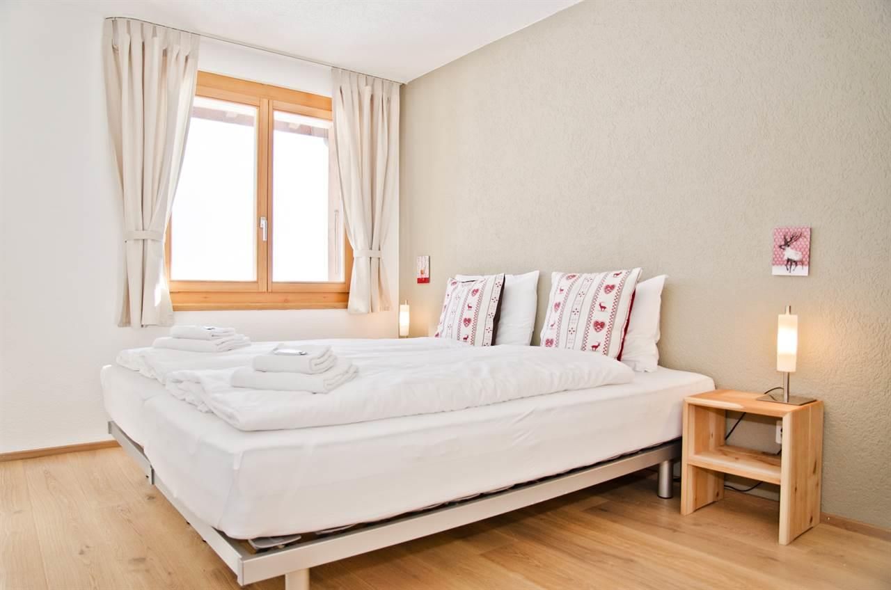 Die 86m2 grosse 3.5-Zimmerwohnung im 3. Stockwerk bietet ein Schlafzimmer mit Doppelbett, ein Schlafzimmer mit zwei Einzelbetten und ein Badezimmer mit Dusche und WC. Die moderne Küche öffnet sich gegen den offenen Wohn- und Essbereich. Vom Balkon geniessen Sie die wunderbare Aussicht auf das Bergpanorama.