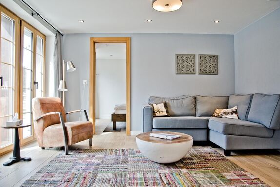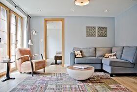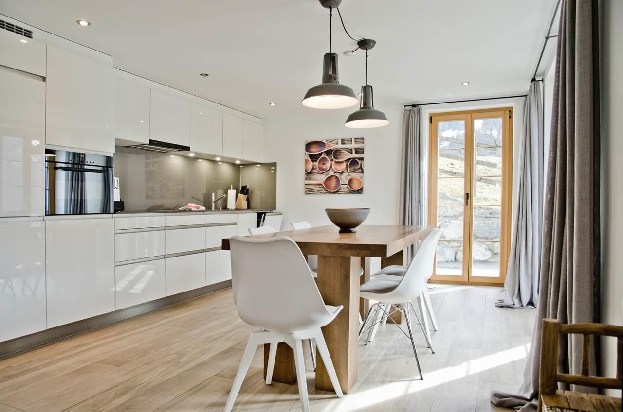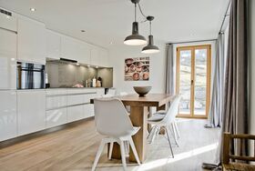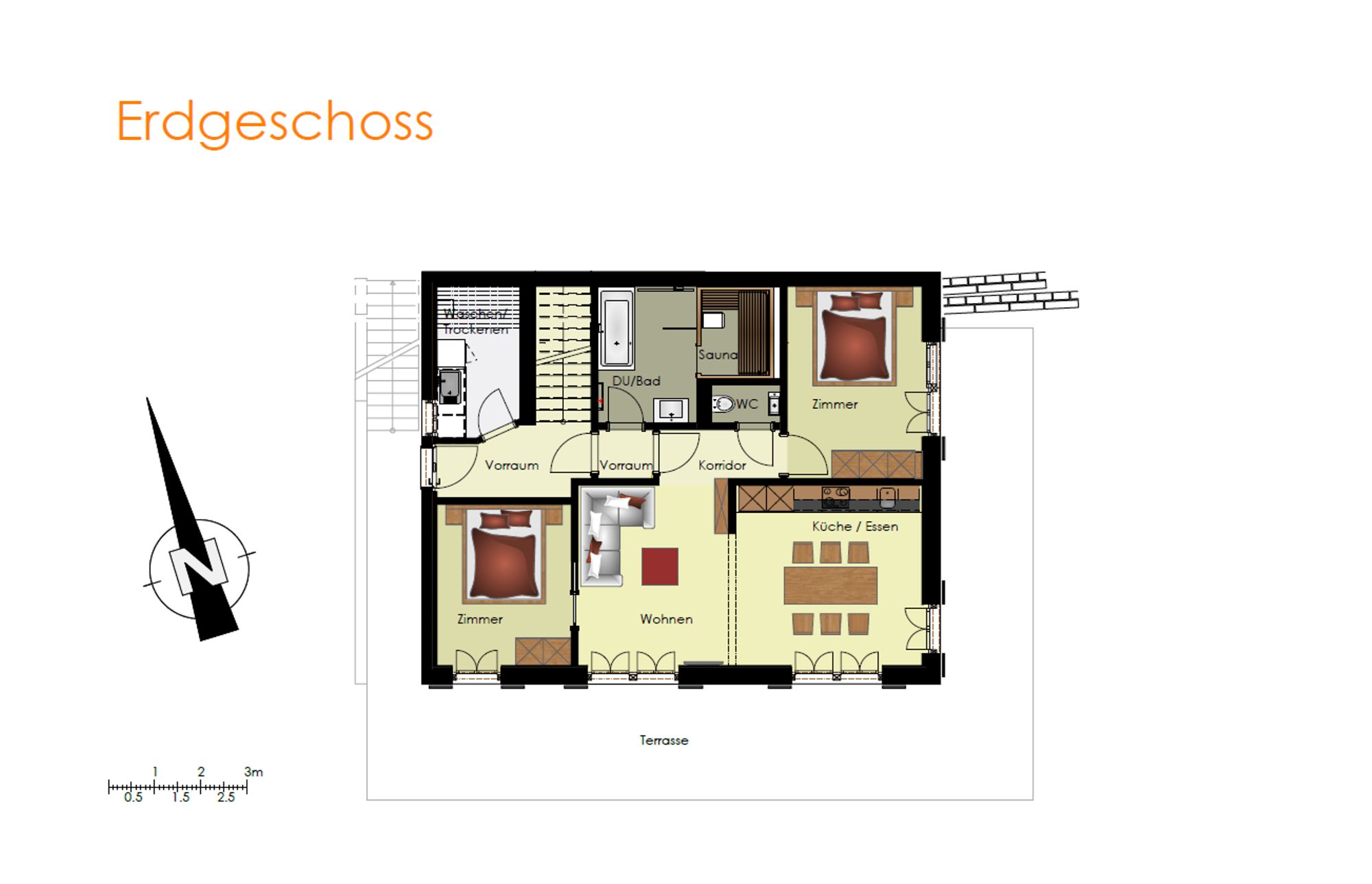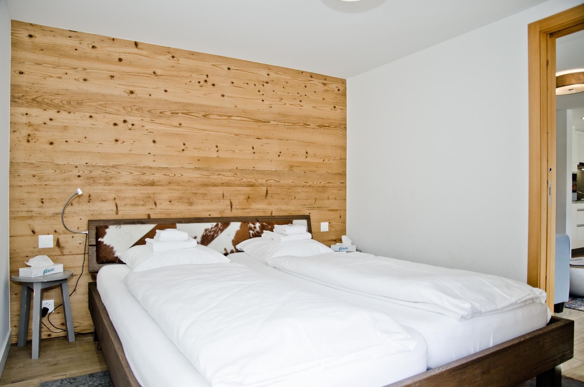 Modernen Luxus bietet die 77m2 grosse 3.5-Zimmerwohnung im Erdgeschoss. Sie verfügt über zwei Schlafzimmer mit Doppelbett, ein Badezimmer mit Badewanne, Dusche und Sauna sowie ein separates WC. Die Wohnung bietet eine moderne, sehr gut ausgestattete Küche mit einem hellen, gemütlichen Wohn- und Essbereich. Auf der Terrasse geniessen Sie die Aussicht auf das wunderbare Bergpanorama.