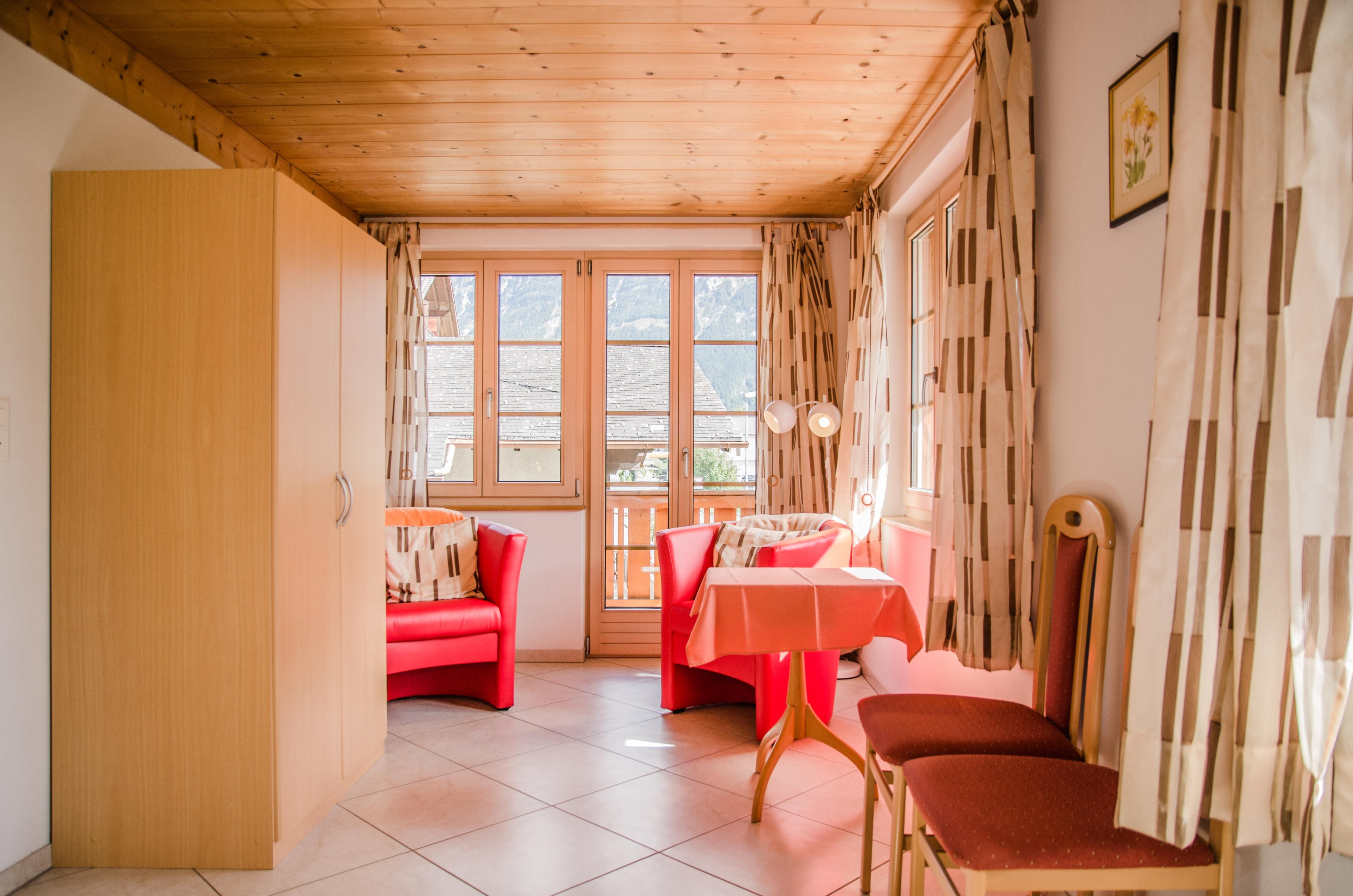 Die gemütliche 3.5-Zimmer-Maisonettewohnung im 1. Stockwerk und auf 80m2 Wohnfläche bietet zwei Schlafzimmer mit zwei Einzelbetten, ein Badezimmer mit Badewanne und WC sowie ein separates WC. Die Küche öffnet sich zum gemütlichen Wohn- und Essbereich. Die eingezäunte Terrasse und der Balkon bieten eine schöne Aussicht auf das Bergpanorama.