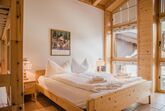 Die gemütliche 3.5 Zimmerwohnung im Dachgeschoss mit 84m2 Wohnfläche bietet ein Schlafzimmer mit Doppelbett und Stockbett, ein Schlafzimmer mit Doppelbett, ein Badezimmer mit Dusche und WC sowie ein separates WC. Die gut ausgestattete Küche ist zum hellen Wohnbereich mit Schwedenofen offen.