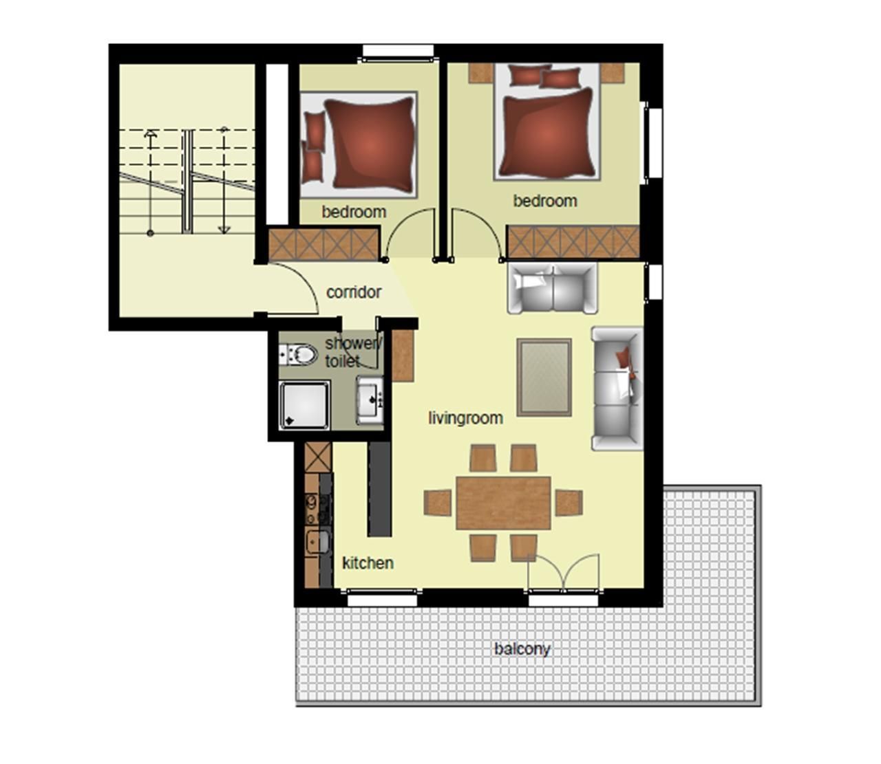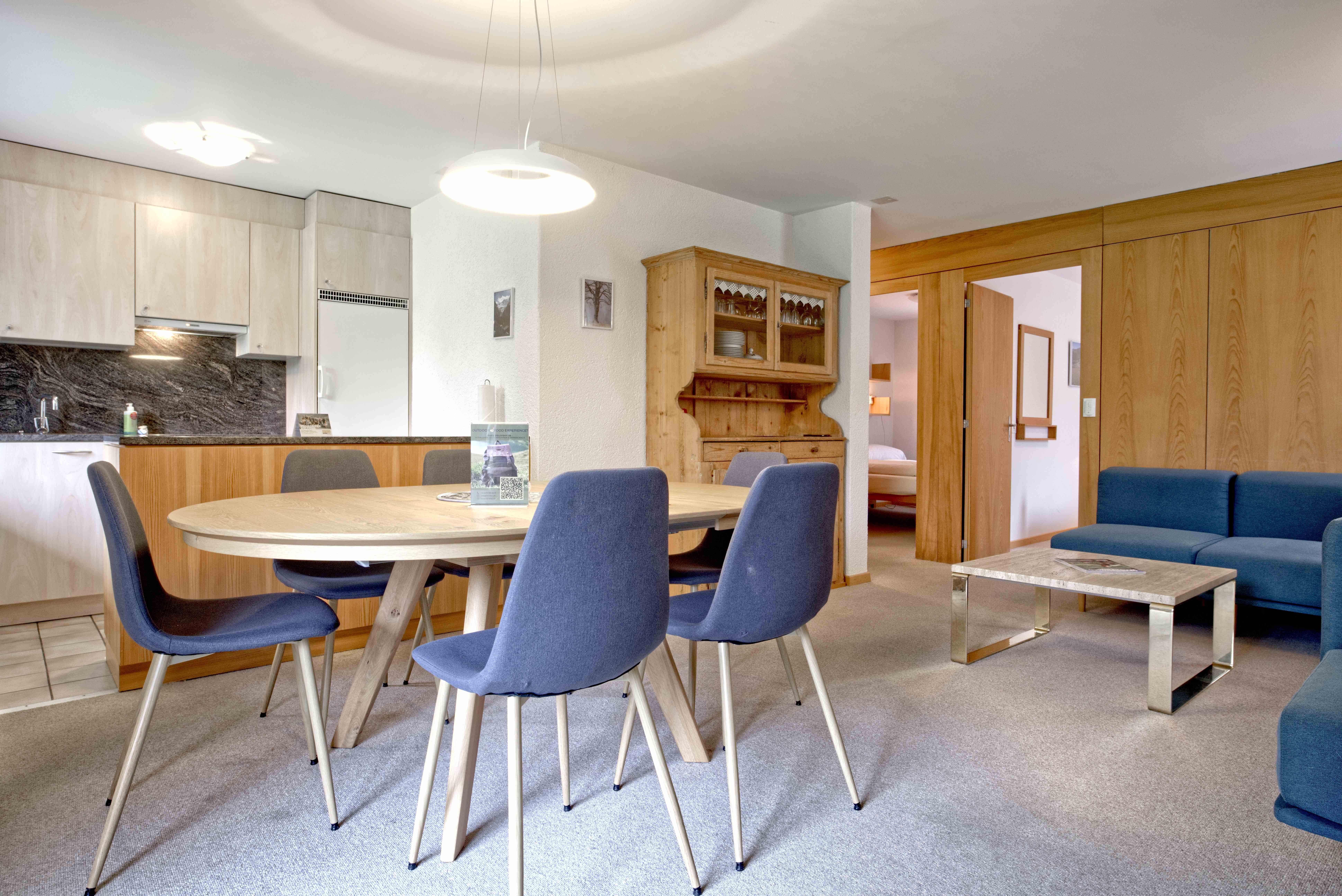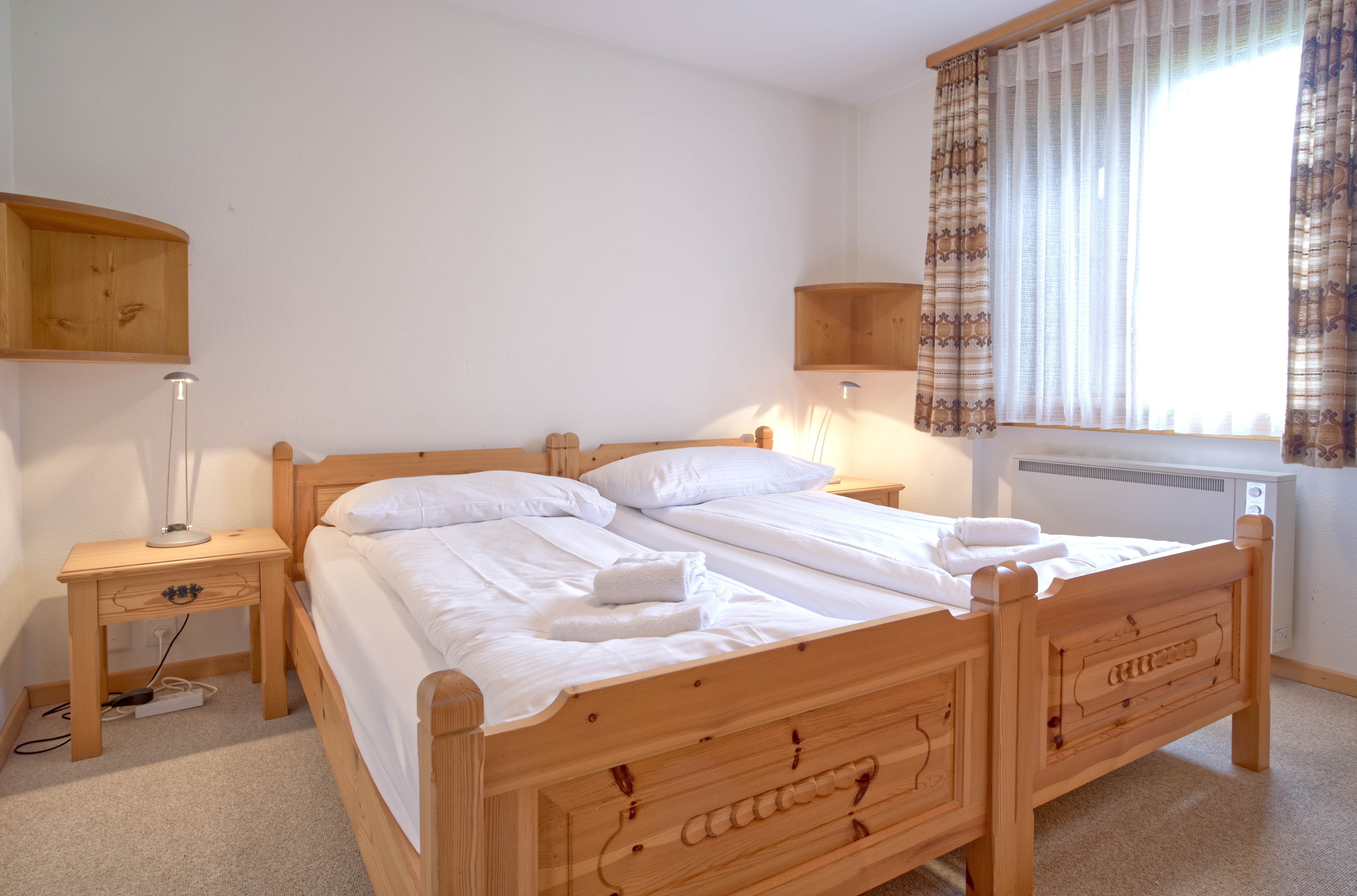 Die heimelige 3-Zimmerwohnung (60m2) verfügt über zwei Schlafzimmer mit zwei Einzelbetten und ein Badezimmer mit Dusche und WC. Die offene Küche schliesst an den gemütlichen Wohn- und Essbereich an. Der Balkon bietet eine tolle Aussicht auf das Bergpanorama.