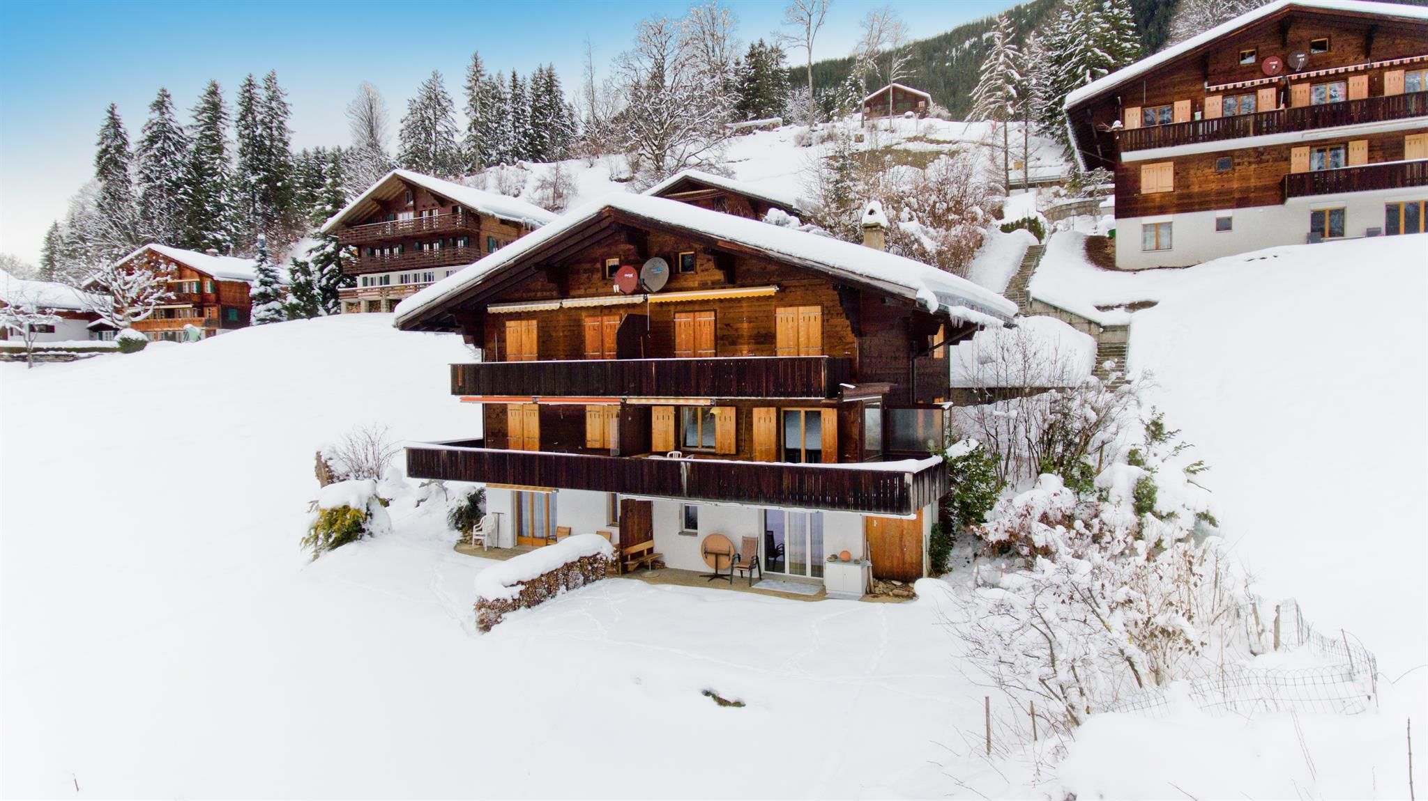 Das Haus befindet sich 15 Minuten zu Fuss vom Dorfzentrum und 5 Minuten zu Fuss von der Kinderskischule Bodmi entfernt, die Bushaltestelle liegt in der Nähe.