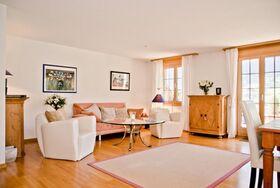 Die 80m2 grosse 2.5-Zimmerwohnung im Erdgeschoss verfügt über ein Schlafzimmer mit Doppelbett und ein Badezimmer mit Dusche und WC. Die Wohnung hat eine komplett ausgestattete Küche die sich zum gemütlichen Wohn- und Essbereich öffnet. Auf der grossen Terrasse geniessen Sie die Aussicht auf das Bergpanorama.