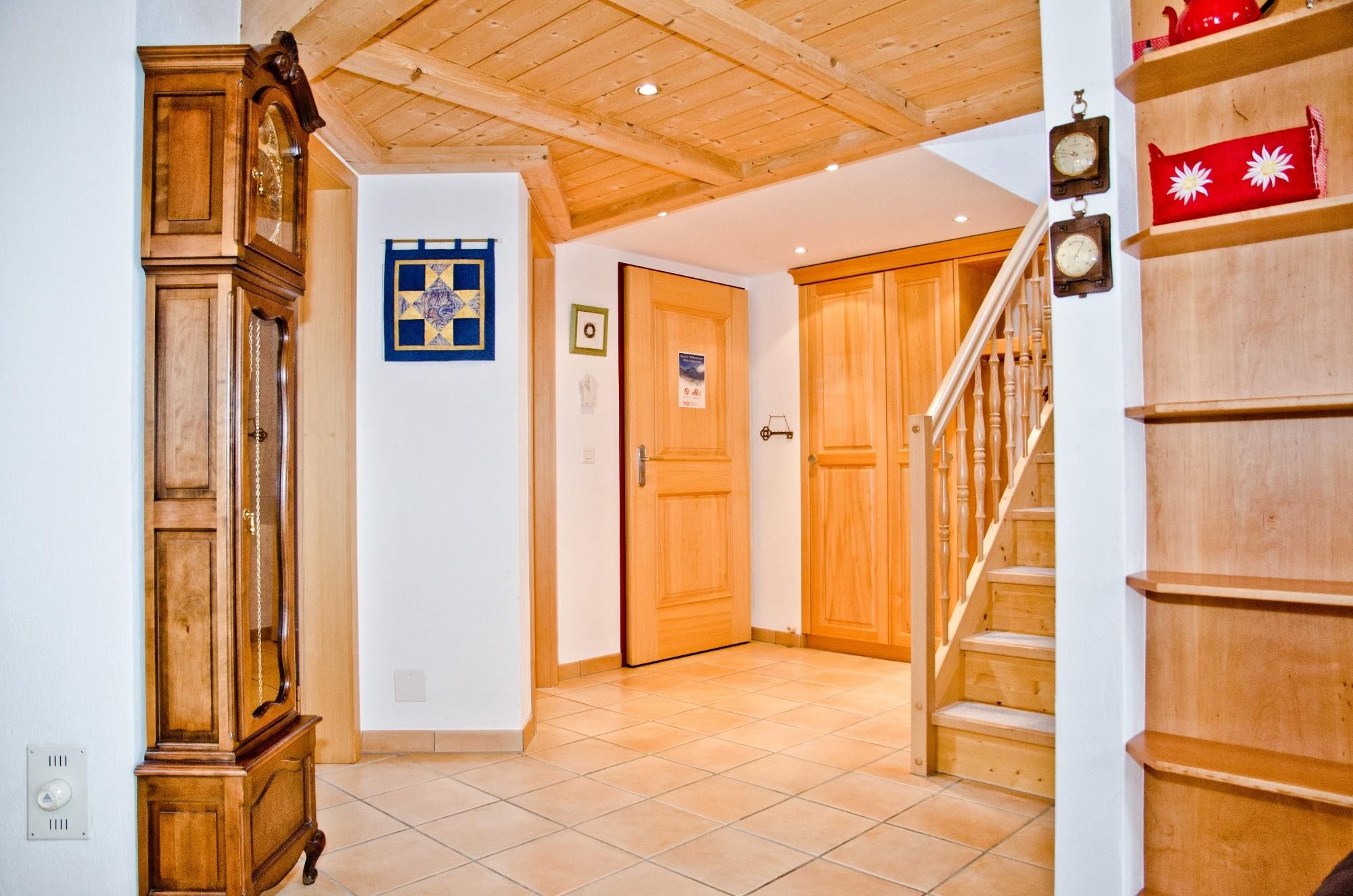 Die gemütliche 3.5-Zimmerwohnung im Dachgeschoss mit Galerie bietet zwei Schlafzimmer mit Doppelbett, ein Badezimmer mit Dusche und WC sowie ein Badezimmer mit Badewanne und WC. Die Küche öffnet sich zum gemütlichen Wohn- und Essbereich mit Cheminée. Auf dem Balkon geniessen Sie sonnige Stunden mit Blick auf das Bergpanorama.