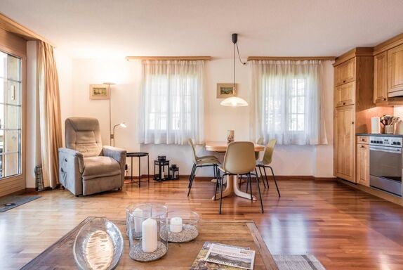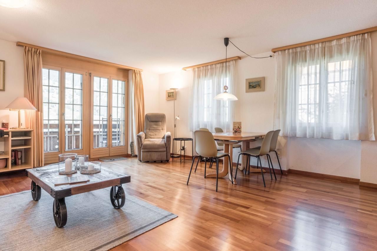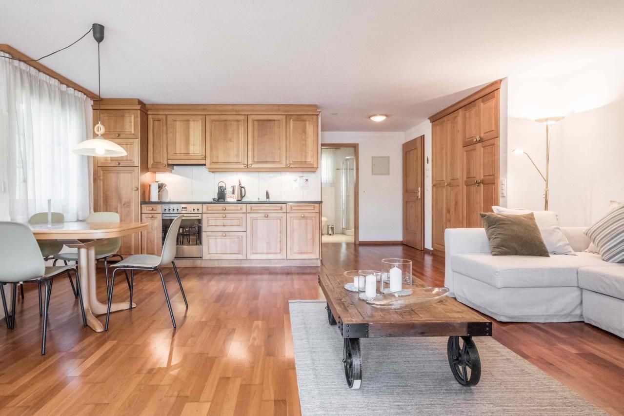 Die helle und gemütliche 2.5-Zimmerwohnung im 1. Stockwerk bietet auf 42m2 Wohnfläche ein Schlafzimmer mit Doppelbett und ein Badezimmer mit Dusche und WC. Die Wohnung ist offen gestaltet, die Küche schliesst direkt an den gemütlichen Wohn- und Essbereich an. Auf dem Balkon geniessen Sie die Aussicht auf das Bergpanorama.