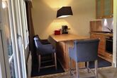 Das Apartment ist mit einer gemütlichen Ledercouch ausgestattet, einem praktischen Schrankbett (160 cm), das für optimalen Schlafkomfort sorgt. Die Studioküche inklusive Spülmaschine lässt keine Wünsche offen. Eine gemütliche Essecke lädt zu gemeinsamen Mahlzeiten ein und auch auf dem Balkon wartet ein gemütlicher Esstisch auf Sie. LCD-TV (Kabel), Digitalradio, CD-Player, und iPod-Dock garantieren beste Unterhaltung und Entspannung. Das moderne Bad mit Regenkopf-Duschbrause ist ein kleines Highlight, welches das Wohlgefühl abrundet. Die gesamte Ausstattung der Wohnung ist überdurchschnittlich hochwertig.