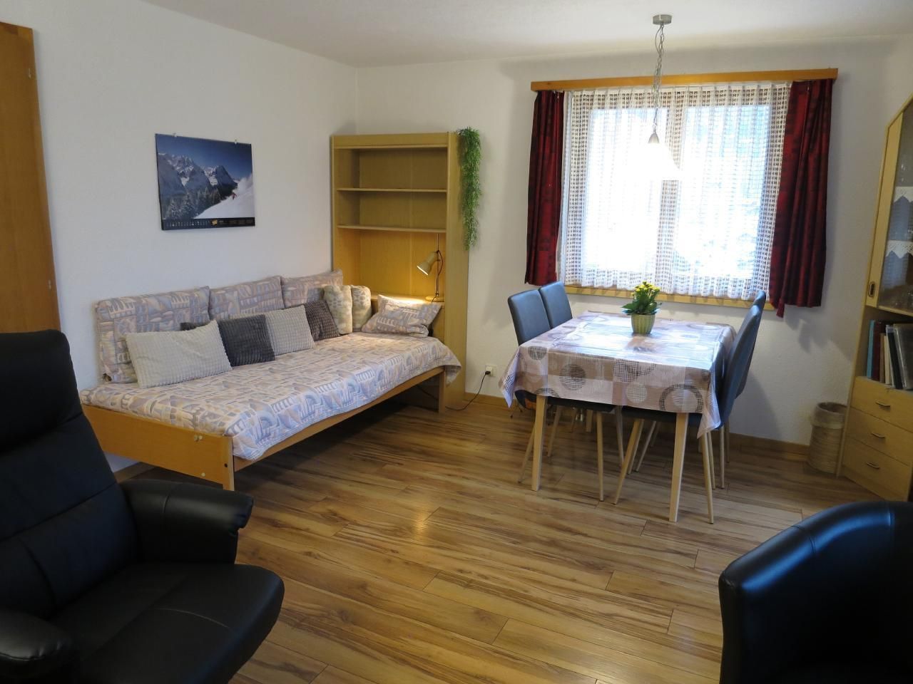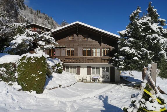 Ruhig, aber zentral gelegenes Chalet mit wunderbarer Aussicht auf die Berge, Wasserfälle und das Tal. Ganzjährige Zufahrt zum Haus und Nutzung der Garage auf Wunsch 30 CHF pro Woche. Der Parkplatz ist kostenlos. Bei guten Schneeverhältnissen ist die Talabfahrt bis zum Haus möglich.