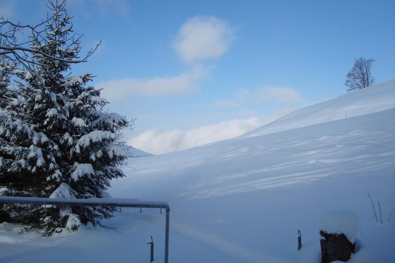 Gartenmöbel, ein Elektro-Grill, ein Kleinkinder-Planschbecken und zwei Kinderschaukeln ergänzen die Ausstattung, um die sonnigen Tage im Freien zu geniessen. Im Winter stehen mehrere Schlitten bereit für abenteuerliche Rodelausflüge.