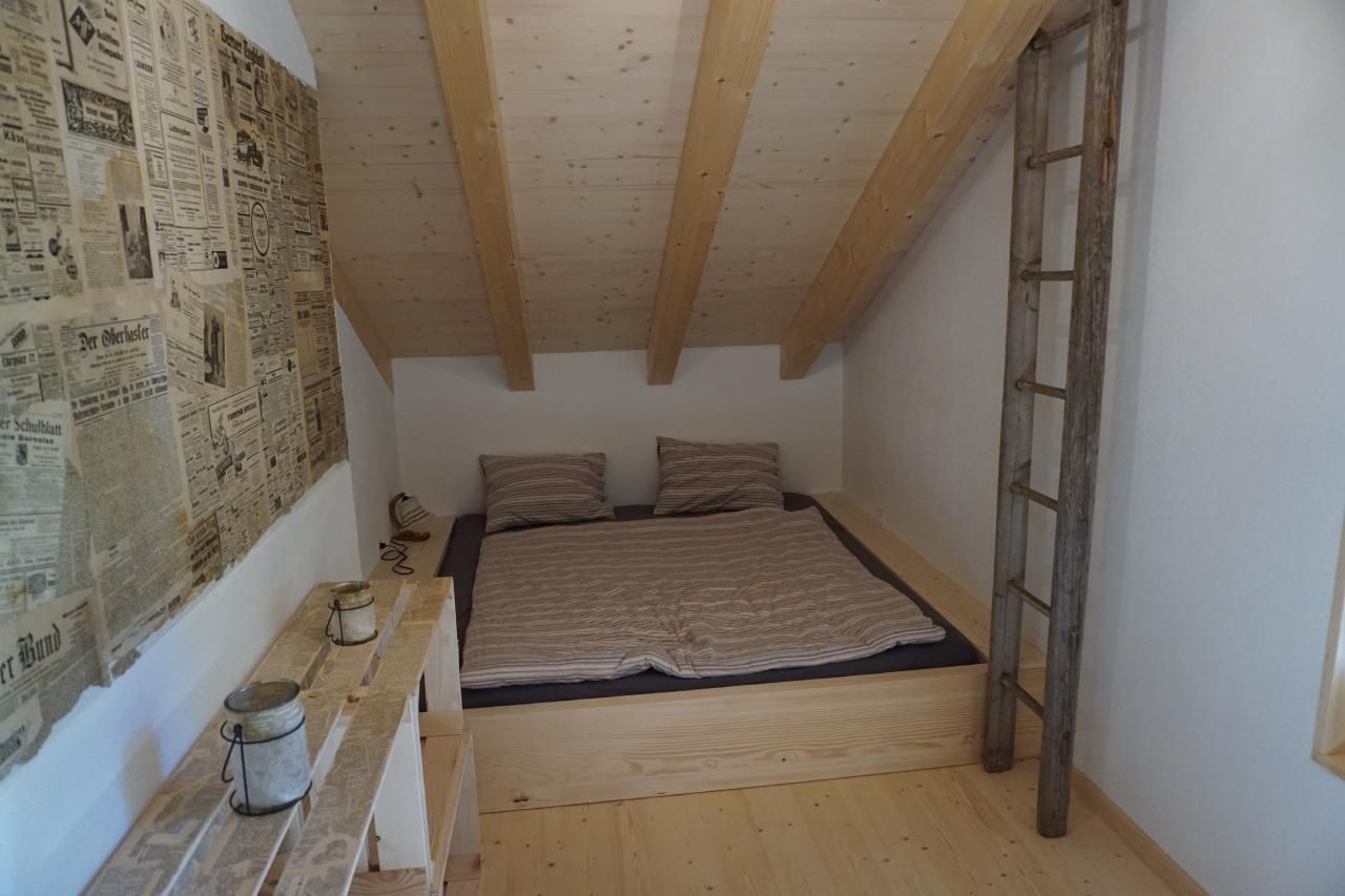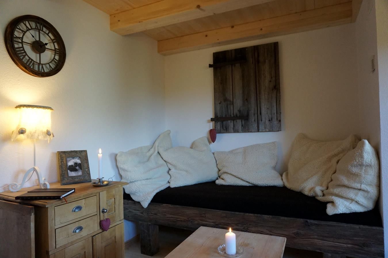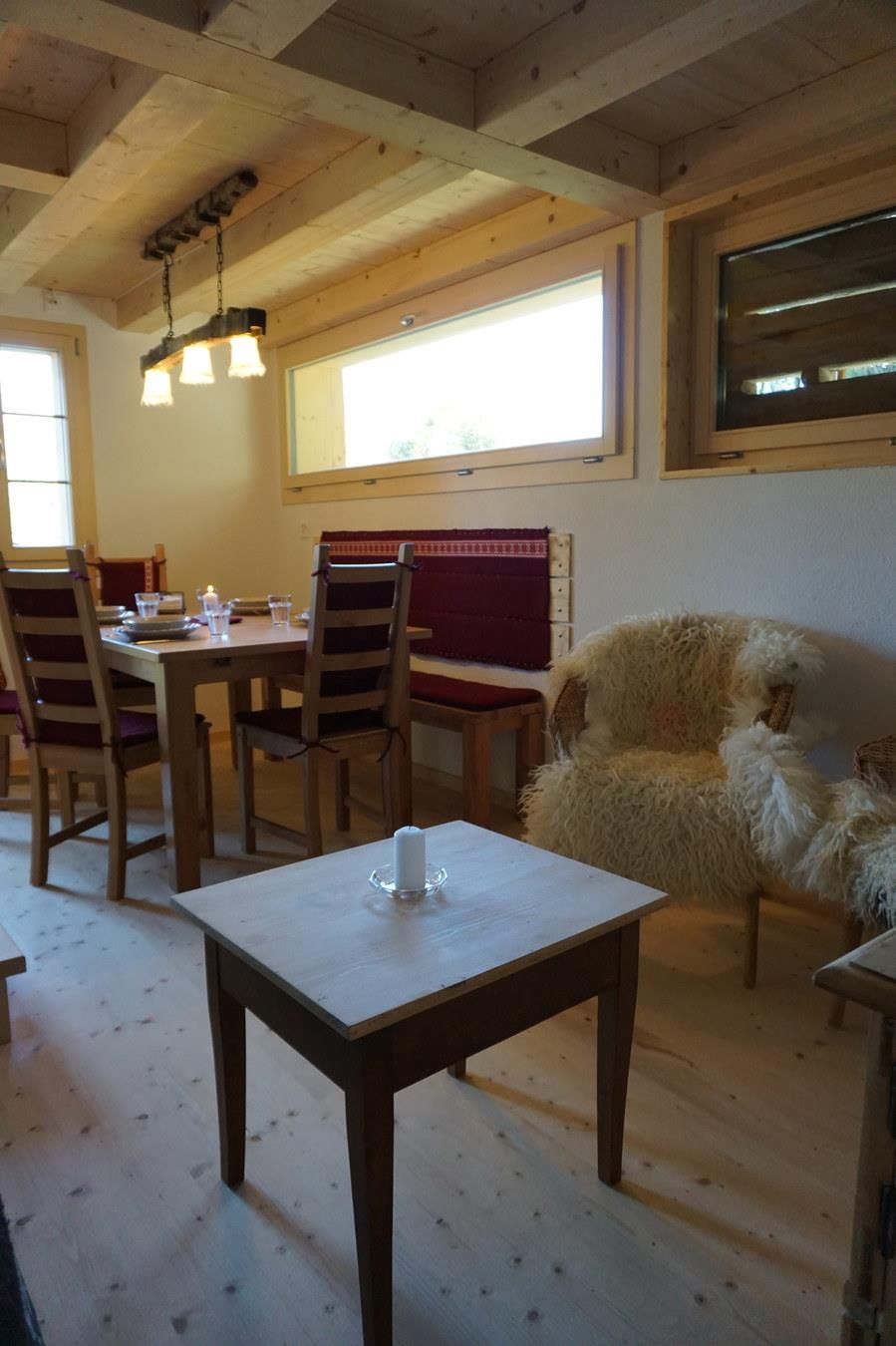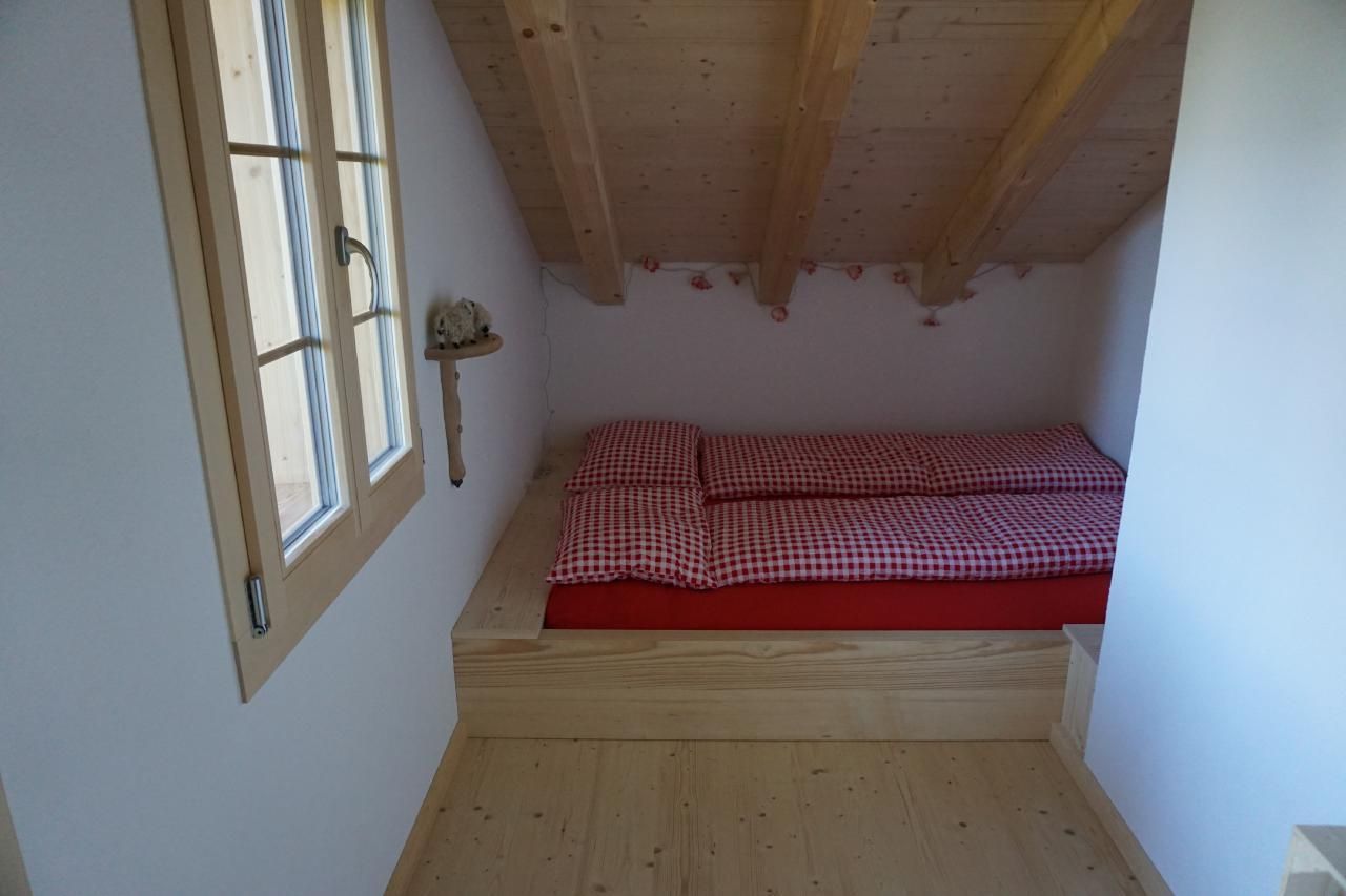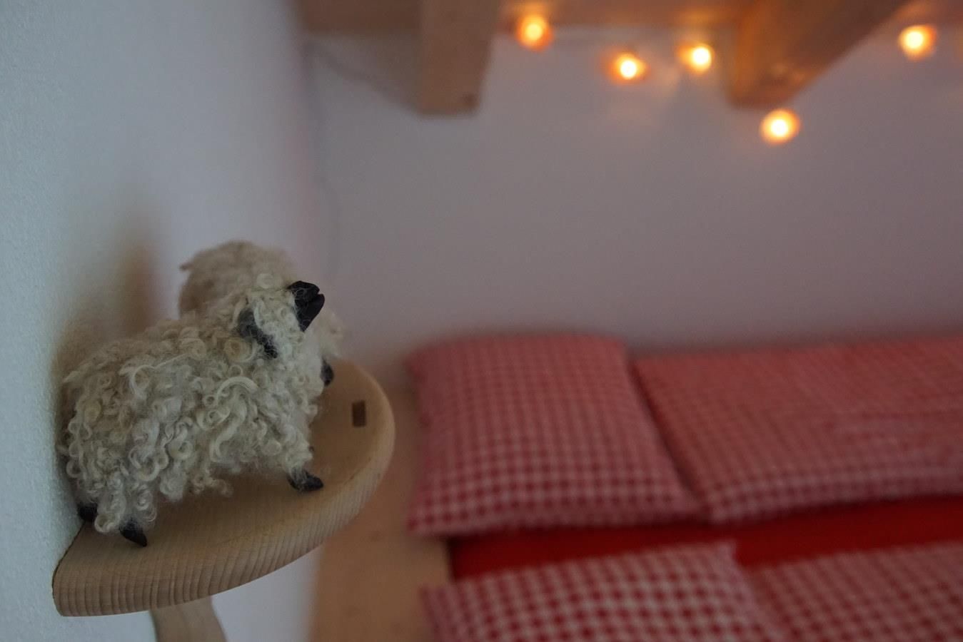 Im Inneren des Wollhauses Oberzwirgi erwartet Sie eine faszinierende Welt aus Wolle. Die Isolierung der Außen- und Innenwände sowie des Daches wurde ausschließlich mit Wolle aus der Eigenproduktion der Vermieterfamilie realisiert. Ein kleines Fenster gewährt spannende Einblicke in das Innenleben einer Wand. Jeder Raum erzählt auf seine Art die Geschichte der Schafe, deren Wolle und die zahlreichen Verwendungsmöglichkeiten dieser natürlichen Ressource. Selbst die Bettinhalte laden mit 100% reiner Wolle zum Träumen ein.