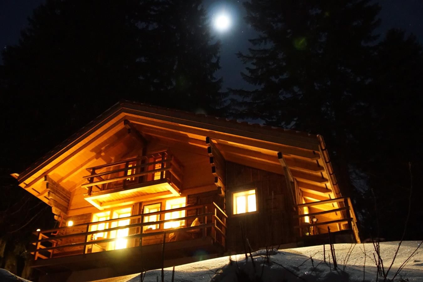Der Außenbereich des Hauses ist ebenso einzigartig und befindet sich abseits der Hektik, umgeben von purer Natur in einer Lichtung am Waldrand. Bitte beachten Sie, dass die Zufahrt mit dem Auto direkt zum Haus nicht möglich ist; ein Parkplatz steht jedoch circa 300 Meter entfernt zur Verfügung. Dieses Detail unterstreicht den Rückzug in die Natur und die Ruhe, die dieses besondere Feriendomizil zu bieten hat.