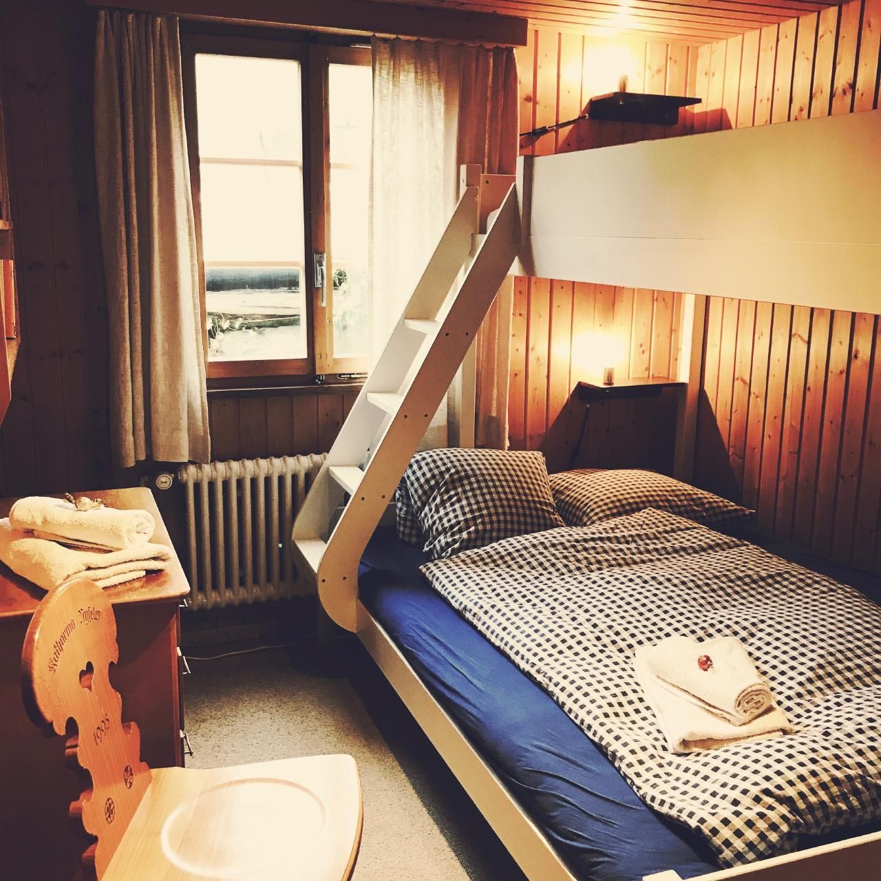3.5-Zimmerwohnung im oberen Stockwerk eines typischen Hasliberger Wohnhauses, das im Jahr 1784 erbaut wurde. Das Haus liegt sonnig und ruhig im Oberdorf von Hasliberg-Hohfluh und bietet einen umfassenden Blick auf die Bergwelt des Oberhasli, insbesondere die Engel- und Wetterhörner. Einkaufsgelegenheiten, Post, Bushaltestelle aber auch Restaurants sind zu Fuss in 5 Minuten zu erreichen. Der Wohn- und Schlafteil besteht aus zwei Schlafzimmern (14 m2, 8 m2) je zwei Betten und einer Wohnstube (13 m2) mit zwei Zusatzbetten. Jedes Zimmer verfügt über einen geräumigen Schrank und eine Elektro-Heizung, in der Wohnstube stehen zudem TV und Radio. Zentrum der Wohnung bildet die offene Küche (16 m2) mit Essecke, sie bietet nebst Kochherd, Backofen, Kühlschrank mit Gefrierfach auch einen Holzherd. Ein Bad mit Badewanne, WC und Lavabo komplettieren die heimelige Dachwohnung. Im Winter wird die nahe Busverbindung sowie die Möglichkeit der Skiabfahrt bis direkt zum Haus geschätzt. Für Skier, Kinderwagen oder andere Gegenstände steht ein Abstellraum zur Verfügung. (Wohnfläche total 56 m2).