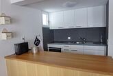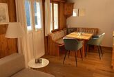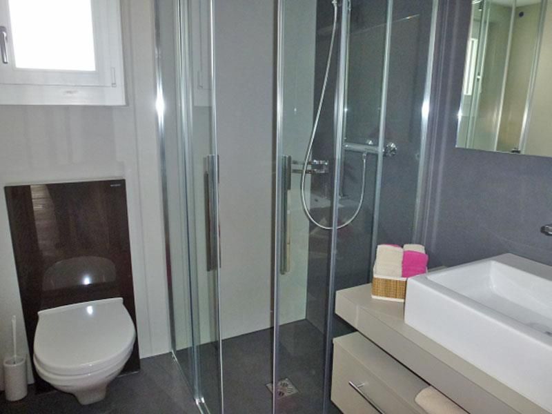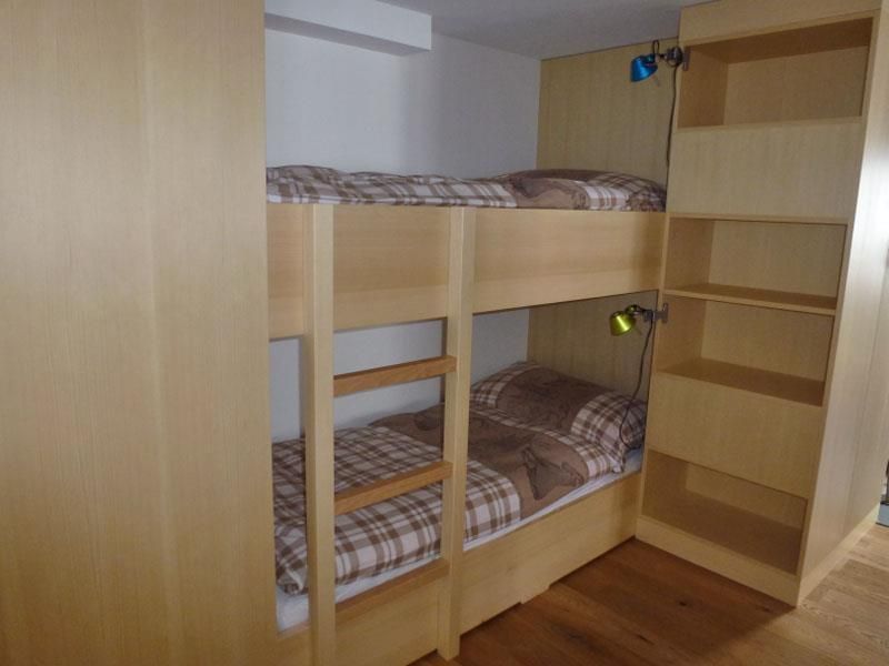 Die Innenausstattung lässt keine Wünsche offen. Eine offene Küche, voll ausgestattet mit Backofen, Kühlschrank samt separatem Gefrierfach, Kapselkaffeemaschine, Toaster, Fonduegeschirr und einem Racletteofen, grenzt an den gemütlichen Ess- und Wohnraum. Für die Ruhephasen steht ein Schlafzimmer mit Doppelbett bereit, ergänzt in einer Nische im Korridor durch ein separates Kajütenbett und auf Anfrage ein Babybett. Eine Garderobe mit Schuhtrockner für 4 Paar Schuhe und die Annehmlichkeit von WLAN und Radio/TV runden die Ausstattung ab, alles überzogen von einem eleganten Parkettboden.