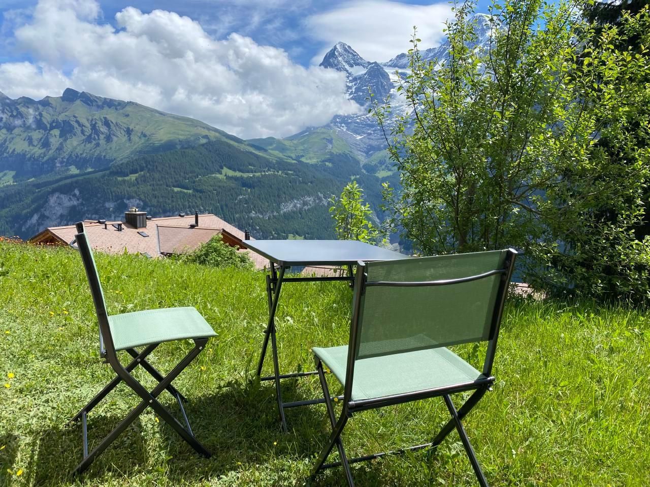 Parterrewohnung mit Gartensitzplatz und sehr schöner, unverbauter Aussicht auf Eiger, Mönch und Jungfrau.