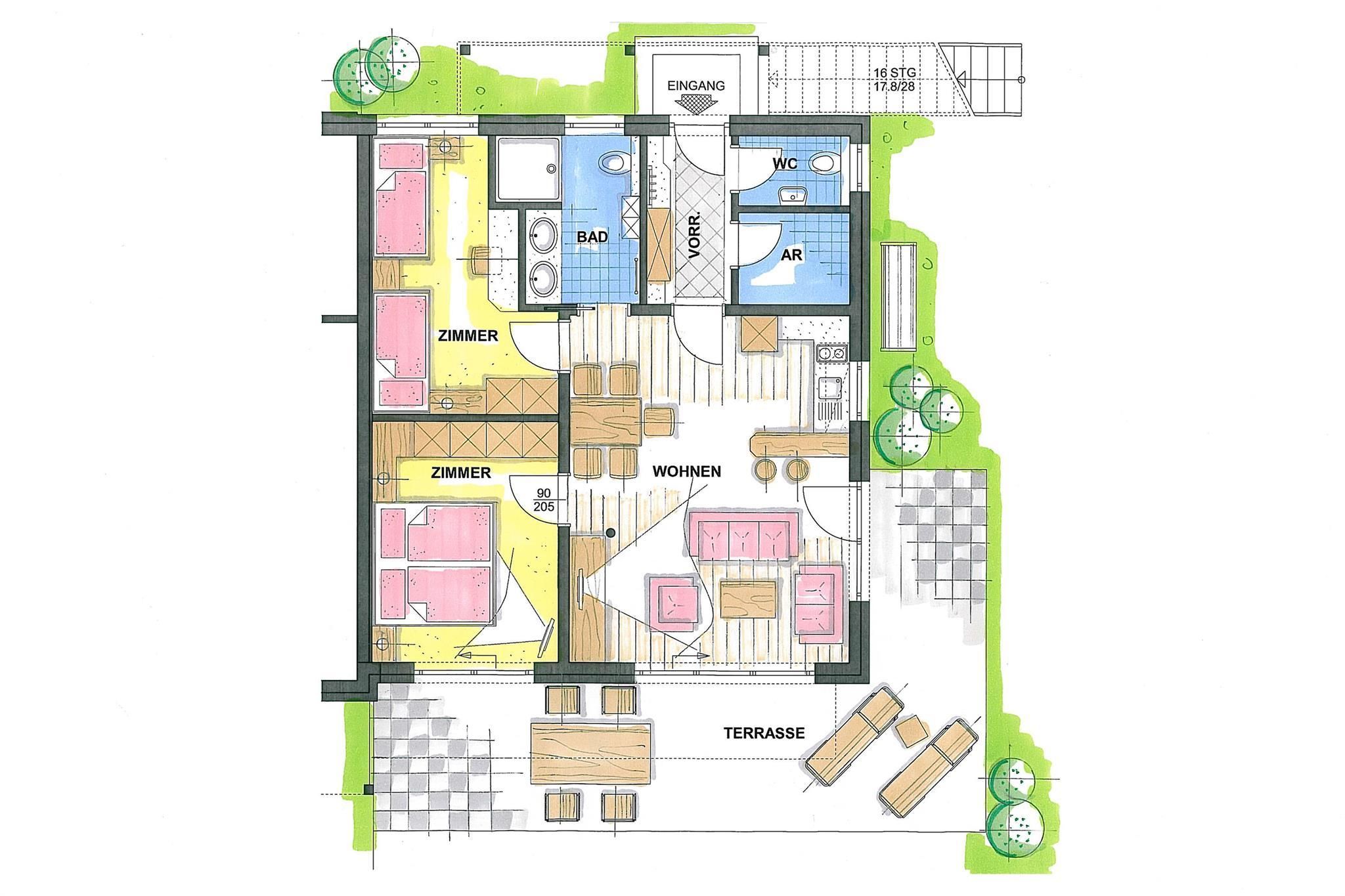Stilvoll urlauben mit Extraklasse! Das Apartment begeistert mit großzügiger und heller Ausstattung. Der riesige Wohnbereich ist mit einer tollen Leder-Sitzgruppe, großem Essplatz, Küche und Theke ausgestattet. Die Eltern schlafen in einem komfortablen Doppelbettzimmer, für die Kinder gibt es ein eigenes Zimmer mit getrennten Betten. 1 Badezimmer mit Dusche/WC und ein zusätzliches, separates WC runden das Angebot ab.