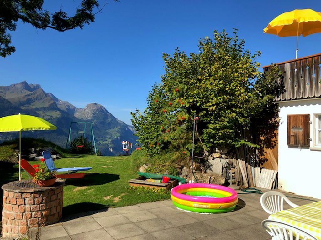 5-Zimmerwohnung im Obergeschoss in einem Zweifamilienchalet. Privater Parkplatz bei Hauszugang. Die Ferienwohnung verfügt über eine elektrische Wohnküche mit Geschirrspüler, Wohnzimmer mit TV, 4 Schlafzimmer und eine Dusche mit WC. Waschmaschine und Trockner zur alleinigen Benutzung. Balkon und Terrasse. Wohnfläche ca. 100 m2. Während der Sommersaison kann der Garten mit Kinderspielplatz und Feuerstelle mitbenutzt werden. Im Winter Skihäsli-Taxi-Haltestelle weniger als 100 m neben Chalet Gibu, Skipiste mit Ski erreichbar. WLAN vorhanden, Nespresso-Maschine, Mikrowelle und Toaster ebenfalls vor Ort. Balkon rund um die Front des Hauses mit schöner Talaussicht bzw. Berge/Gipfel sowie Gartenterrasse mit Abendsonne. Sicht auf Badsee (ca. 75 Höhenmeter unter der Liegenschaft). Im Hoch-Sommer kann auf Wunsch ein Kinderbassin auf dem Hausplatz aufgestellt werden. Tischtennis-Tisch vorhanden sowie Basket-Korb.