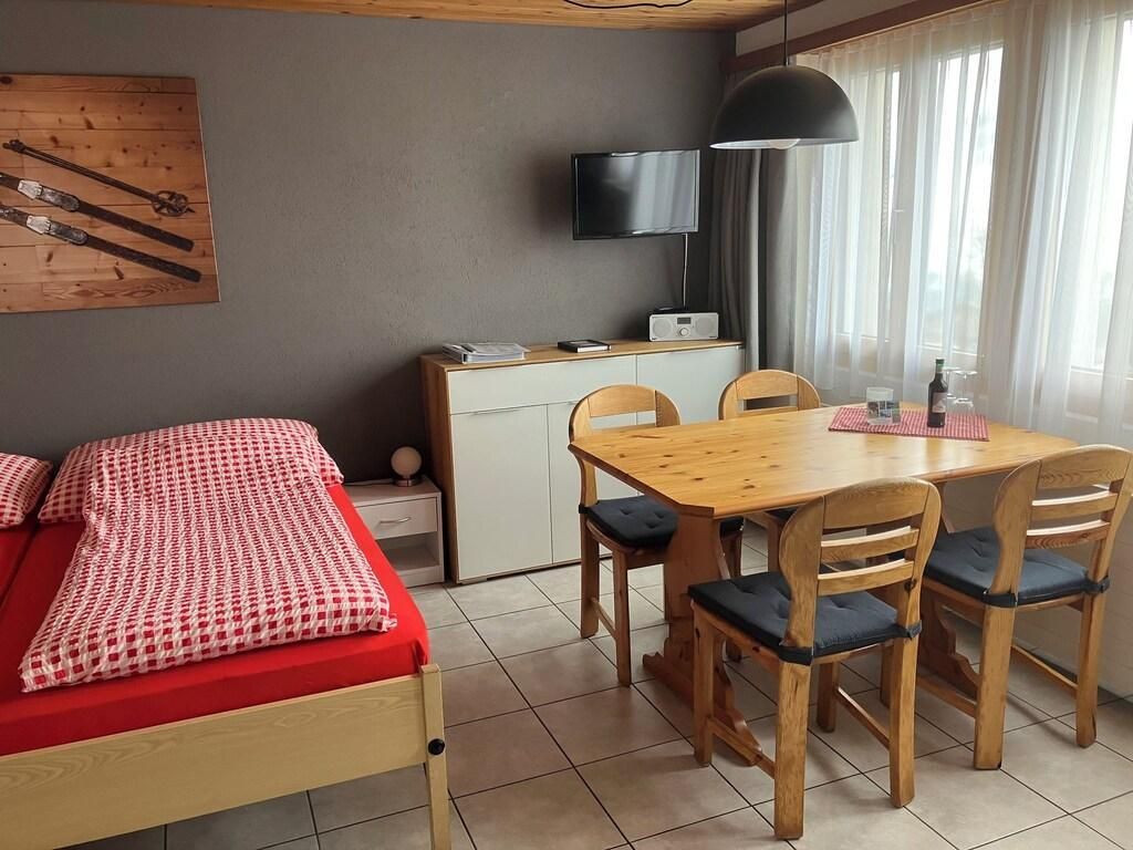 Studio im Herzen der Schweiz mit fantastischer Aussicht auf Berge, Gletscher und den Brienzersee. Unser Haus liegt auf 1240 Meter und befindet sich 10 Gehminuten von der Talstation der Bergbahn Twing - Käserstatt entfernt. Zur Bushaltestelle des Postautos sind es 2 Minuten. Die Skipiste ist 100 Meter entfernt, auch der Einkaufsladen und ein Restaurant befinden sich ebenfalls in unmittelbarer Nähe (3 Minuten). Der schön angelegte Badesee mit Bistro bietet ein Badevergnügen mit herrlichem Bergpanorama und ist in ca. 7 Gehminuten zu erreichen. Auf dem Hasliberg ist der Badesee ein Sommertreffpunkt von Gästen und Einheimischen. Das Studio bietet Platz für 2 Personen, auf Wunsch kann ein Kinderbett zur Verfügung gestellt werden. Das Studio befindet sich im Parterre und hat einen Sitzplatz vor dem Haus. Im Mietpreis inbegriffen sind Bett-, Badezimmer- und Küchenwäsche, Parkplatz, TV, Internetradio, WLAN, Heizung und Strom. Wir freuen uns, Sie bei uns zu begrüßen. Ausflugsmöglichkeiten: Bergbahnen Meiringen-Hasliberg bringen Sie mitten ins Ski- und Wandergebiet Alpentower 360° Panorama. Erlebniswege Aareschlucht ein imposantes Naturschauspiel Giessbachfälle ein einzigartiges Naturereignis unweit von Brienz Reichenbachfall für Sherlock-Holmes-Fans ist dieser Ausflug ein Muss. Gelmerbahn mit 106% Steigung steilste Standseilbahn der Welt Freilichtmuseum Ballenberg das schweizerische Freilichtmuseum für ländliche Kultur Brienzer Rothorn seit 1892 mit Volldampf auf das Brienzer Rothorn Jungfraujoch Top of Europe höchste Bahnstation Europas, Schnee und Eis 100% garantiert Niederhorn traumhafter Ausblick auf das weltbekannte Dreigestirn Eiger, Mönch u. Jungfrau Schynige Platte Nostalgiebahn und Alpengarten Niesen entlang der längsten Treppe der Welt bringt sie die Standseilbahn auf den Gipfel Titlis höchstes Ausflugsziel der Zentralschweiz Pilatus steilste Zahnradbahn der Welt Badesee Hasliberg bietet ein Badevergnügen mit herrlichem Bergpanorama. Sonstige Wohnzimmerausstattung (Wohnzimmer1): Der Esstisch bietet vier Personen Platz, Sie genießen von da eine atemberaubende Aussicht auf die Berner Oberländer Bergriesen und den Brienzersee. Ein TV-Gerät (Satellitenempfang), ein Internetradio sowie ein CD-Player stehen zur Verfügung.2 Einzelbetten und 1 Relaxsessel. Sonstige Kücheneinrichtung (Küche1): Käsefondueset und Raclette Ofen Sportmöglichkeiten in der Umgebung: Angeln, Bergsteigen, Eislaufen, Golfplatz, Klettern, Mountainbiking, Paragliding, Radtouren, Rafting, Reitplatz / Reitmöglichkeiten, Rodeln, Ski (alpin), Ski (Langlauf), Surfen, Tennis, Ortsbeschreibung: Hasliberg liegt mitten in der Schweiz zwischen Interlaken und Luzern an sehr sonniger Lage mit traumhafter Aussicht auf die Berner Alpen. Mit seinen unendlichen Ausflugsmöglichkeiten und fantastischen Naturschönheiten bietet das Tal ein unvergessliches Ferienerlebnis. Am Hasliberg gibt es drei Dorf- und drei Hofläden nebst diversen Restaurant. Auf der Bühne im Hotel Wetterhorn finden legendäre Konzerte statt. Ein abwechslungsreiches Konzertprogramm bietet musikalische Leckerbissen. Der Badesee bietet ein Badevergnügen mit herrlichem Bergpanorama. Auf dem Hasliberg ist der Badesee ein Sommertreffpunkt von Gästen und Einheimischen. Genießen Sie Ihren Urlaub im Herzen der Schweiz, im wunderschönen Haslital.Basisinformationen: