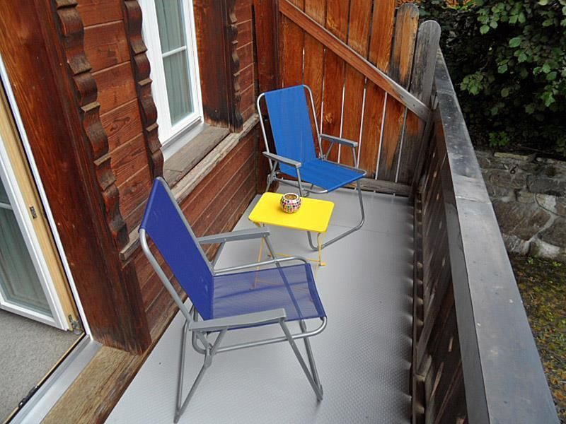 Im Außenbereich dieser Ferienoase wartet ein sonniger Balkon, der mit Sitzmöbeln ausgestattet ist, und lädt dazu ein, die reine Bergluft und die friedvolle Atmosphäre zu genießen. Der Garten, der zur gemeinschaftlichen Nutzung einlädt, bietet zusätzlichen Raum für Entspannung und gesellige Stunden unter freiem Himmel.