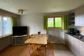 Innen laden ein offenes Küchenkonzept sowie ein einladendes Wohnzimmer mit SAT-TV, Radio, gemütlicher Couch und Esstisch zum Verweilen und Entspannen ein. Die Küche, kürzlich renoviert, ist mit einer Spülmaschine sowie modernen Annehmlichkeiten wie Fondue- und Raclettegeschirr, einer Kaffeemaschine mit Filtern, Toaster und Handmixer ausgerüstet. Für erholsame Nächte sorgen zwei Doppelschlafzimmer, wobei eines mit edlen Arvenholzmöbeln für eine besondere Atmosphäre ausgestattet ist. Ein Bad mit Dusche/WC vervollständigt das Wohlfühlangebot im Inneren.