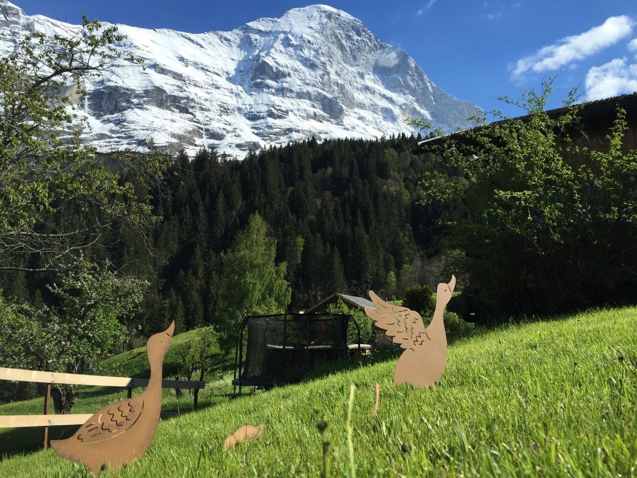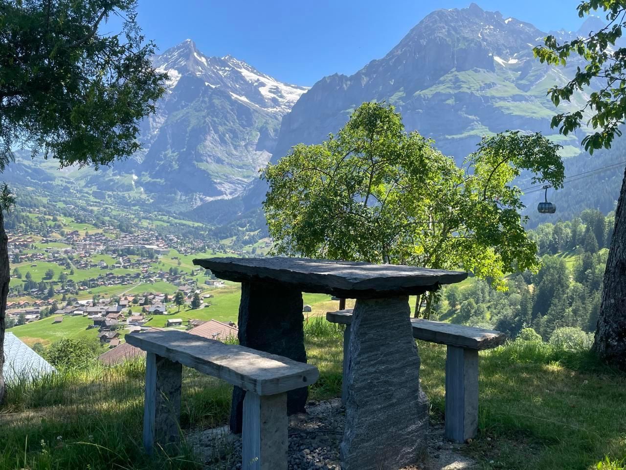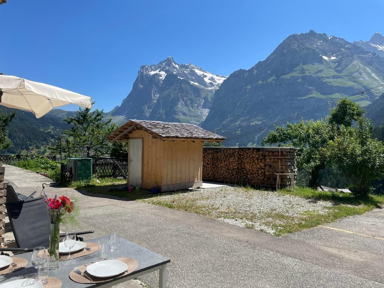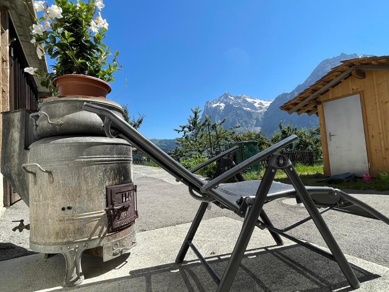 Geniessen Sie einer Ihrer drei Aussensitzplätze mit Blick nach Grindelwald und in die imposante Bergwelt.