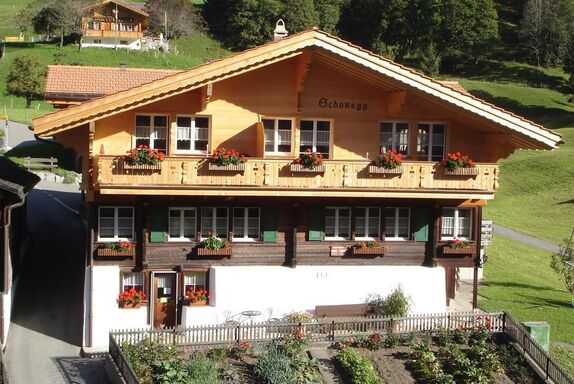 Herzlich willkommen im Dreifamilienchalet Schonegg, einem idyllischen Rückzugsort für Ruhe suchende Gäste. Gelegen oberhalb des Dorfzentrums, verspricht unser Chalet nicht nur eine ruhige Lage, sondern auch eine atemberaubende Aussicht auf die Bergwelt. Mit einer gemütlichen 2-Zimmerwohnung im 1. Stock, die Ihnen alles bietet, was Sie für einen unvergesslichen Aufenthalt benötigen, laden wir Sie ein, bei uns eine unvergleichliche Zeit zu verbringen.