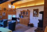 Sonstige Wohnzimmerausstattung (Wohnzimmer1): Grosses Sofa (Sofa-Bett für 2 zusätzliche Personen), 2 Sessel, Salontischchen, Sunrise TV, Bauernschrank, Schwedenofen, ein Tisch mit 5 Stühlen