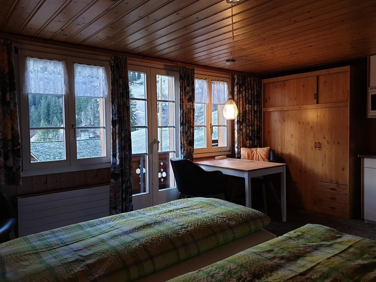 Traditionelles Grindelwaldner-Chalet an ruhiger, idyllischer Lage unter der Eigernorwand, mit schöner 360° Aussicht auf Grindelwald und die Berge (Wetterhorn, Mettenberg, Eiger). Unser Chalet liegt an der Skipiste Nr. 22 von der kleinen Scheidegg nach Brandegg/Grund, 2 Min. von der Busstation, 5 Min. vom nächsten Einkaufszentrum entfernt. Die 3.5-Zimmer-Ferienwohnung (4138) ist im 2. Stock unseres 2 Familienhauses. Es hat einen Gartensitzplatz, einen Kinderspielplatz mit Baumhaus, Schaukel und einen Parkplatz neben unserem Chalet. Nichtraucher-Wohnung, Haustiere sind nicht erlaubt.
