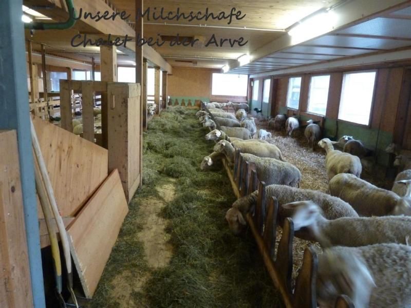 Wir haben auch einen Milchschafbetrieb und stellen selber Käse her. Die Schafe sind von Oktober bis April auf dem Heimbetrieb (neben unserem Chalet) und im Sommer auf der Alp.