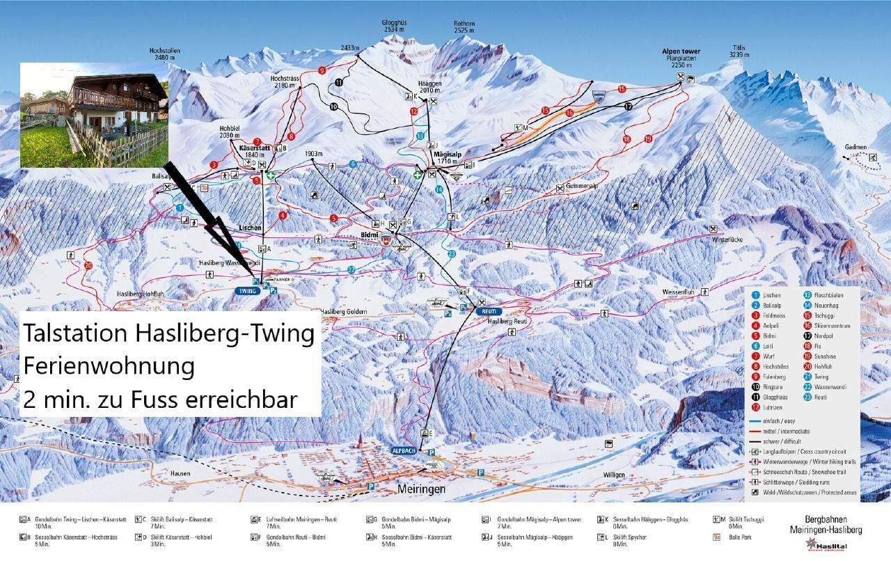 Die Umgebung hat viel zu bieten: Ein kurzer Fußmarsch führt Sie zu den Berg- und Seilbahnen Meiringen Hasliberg, ideal für Liebhaber des alpinen Sports. Im Winter verläuft eine Skipiste nahe der Ferienwohnung, während im Sommer der nahegelegene See bei 300m Entfernung für Erfrischung sorgt. Lebensmittelgeschäfte und Restaurants erreichen Sie ebenfalls in nur wenigen Minuten.