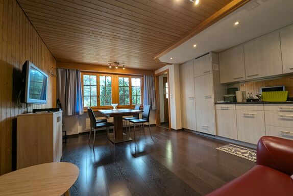 Willkommen in Ihrem Traumurlaub in der charmanten 2-Zimmerwohnung im Chalet Stieregg, gelegen im Herzen von Grindelwald. Diese wunderschöne Erdgeschosswohnung bietet auf 44 m² eine perfekte Kombination aus Gemütlichkeit und modernem Komfort, ideal für Paare oder kleine Familien, die die atemberaubende Landschaft der Schweizer Alpen in stilvollem Ambiente genießen möchten.