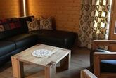 Schöne Polstergruppe, einer Essecke und einer modernen Einbauküche vor. Für Ihren Komfort gibt es ein Doppelschlafzimmer sowie ein kleines Zimmer mit zwei Betten und Dachschräge.