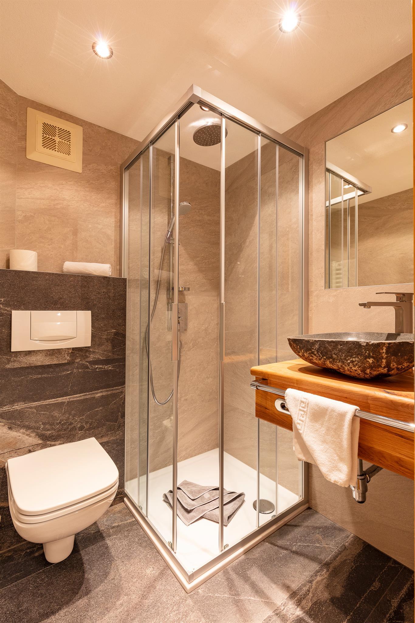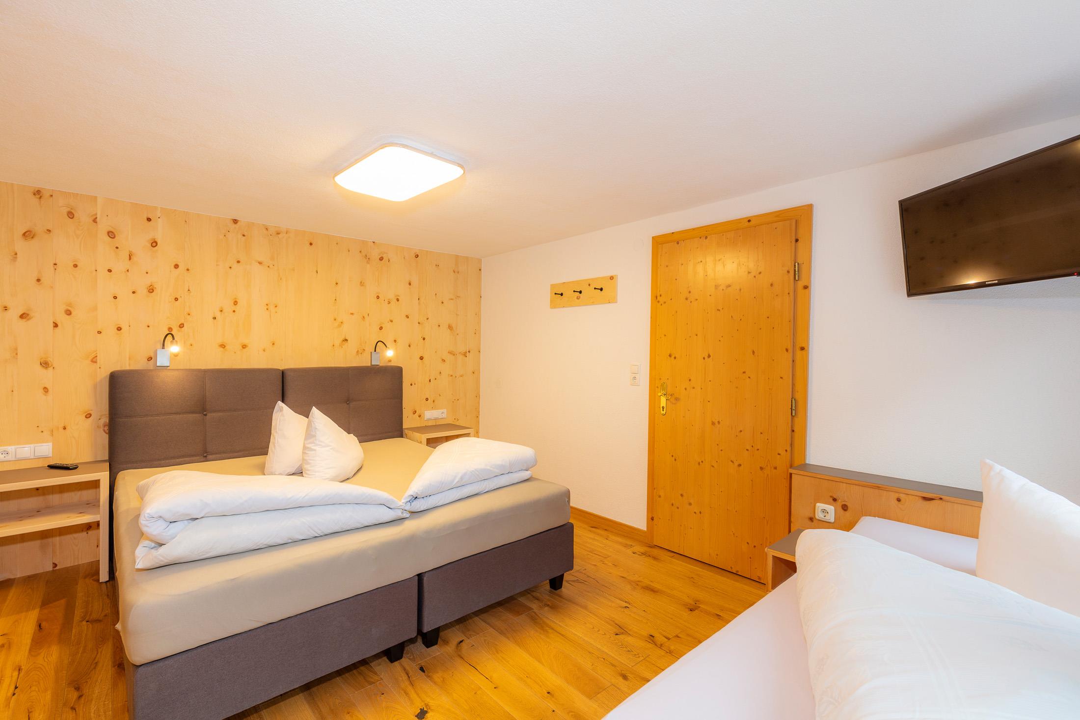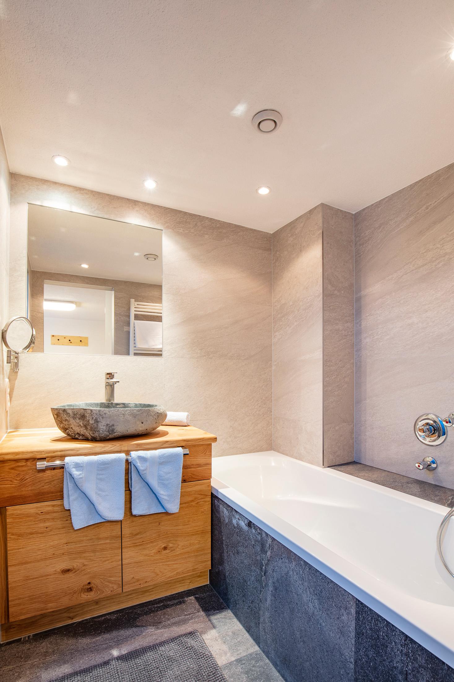 Gemütlich eingerichtetes Zirbenappartement: offener Wohn-Schlafraum mit einem Doppelbett und offenen Durchgang in den Wohnraum mit Essbereich. 1 Badezimmer mit Dusche/WC, voll ausgestattete Küche, 1 weiteres Dreibettzimmer mit Kabel TV, einem Badezimmer mit Badewanne und einem separatem WC und einer Dampfsauna, Größe: ca. 55 m², Balkon