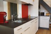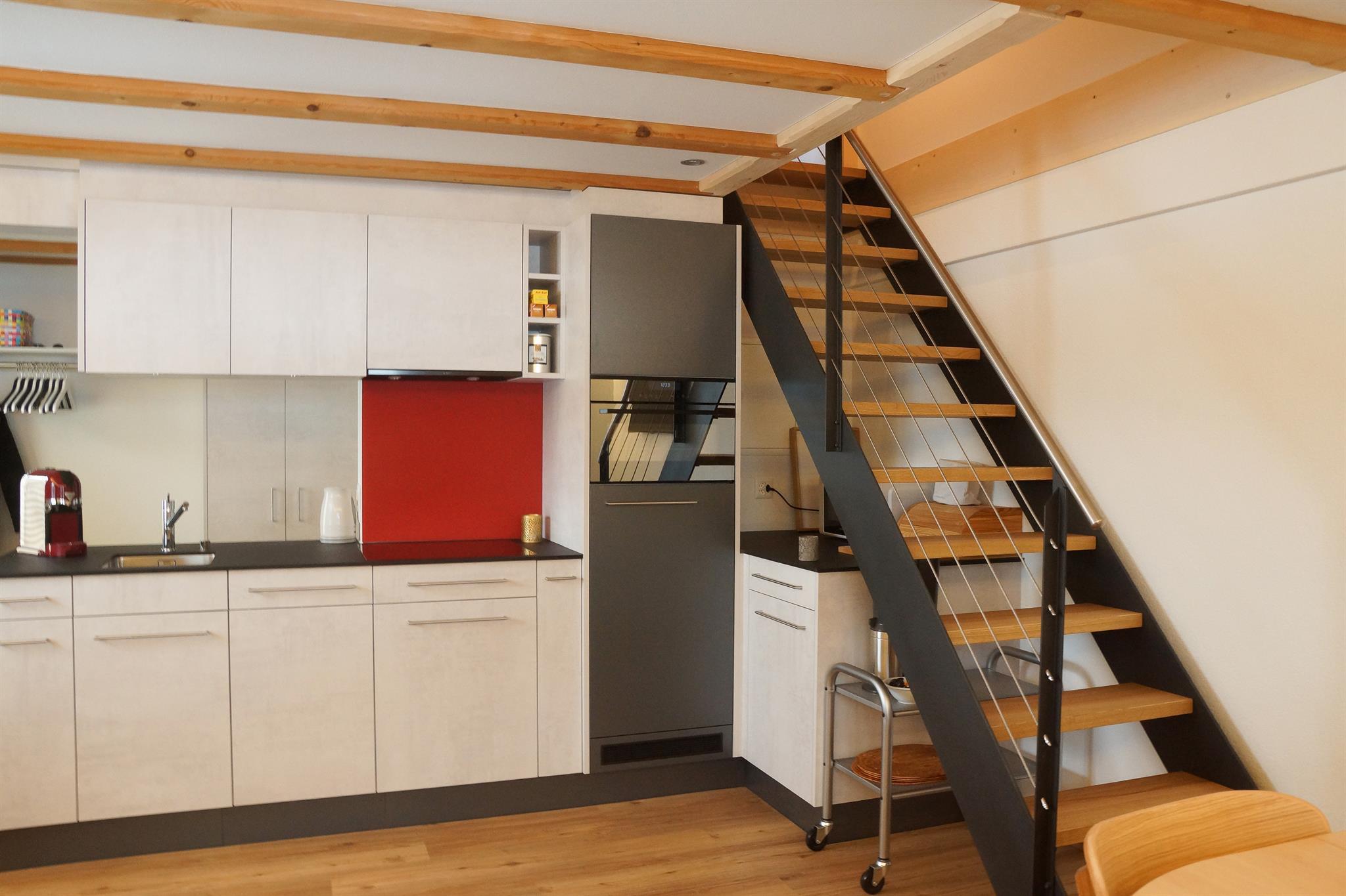 Küche: Geschirrspüler, Nespresso Kapselmaschine, und Mikrowelle.