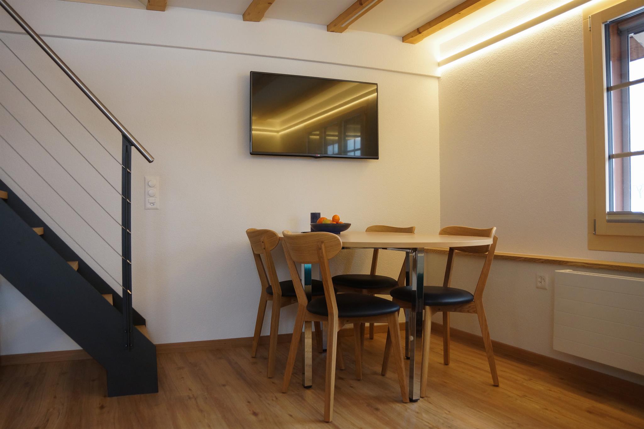 Inklusive Bett-, Küchen- und Badezimmerwäsche, Elektrizität, reservierter Parkplatz, Skiraum, Velounterstand, WiFi und Endreinigung.