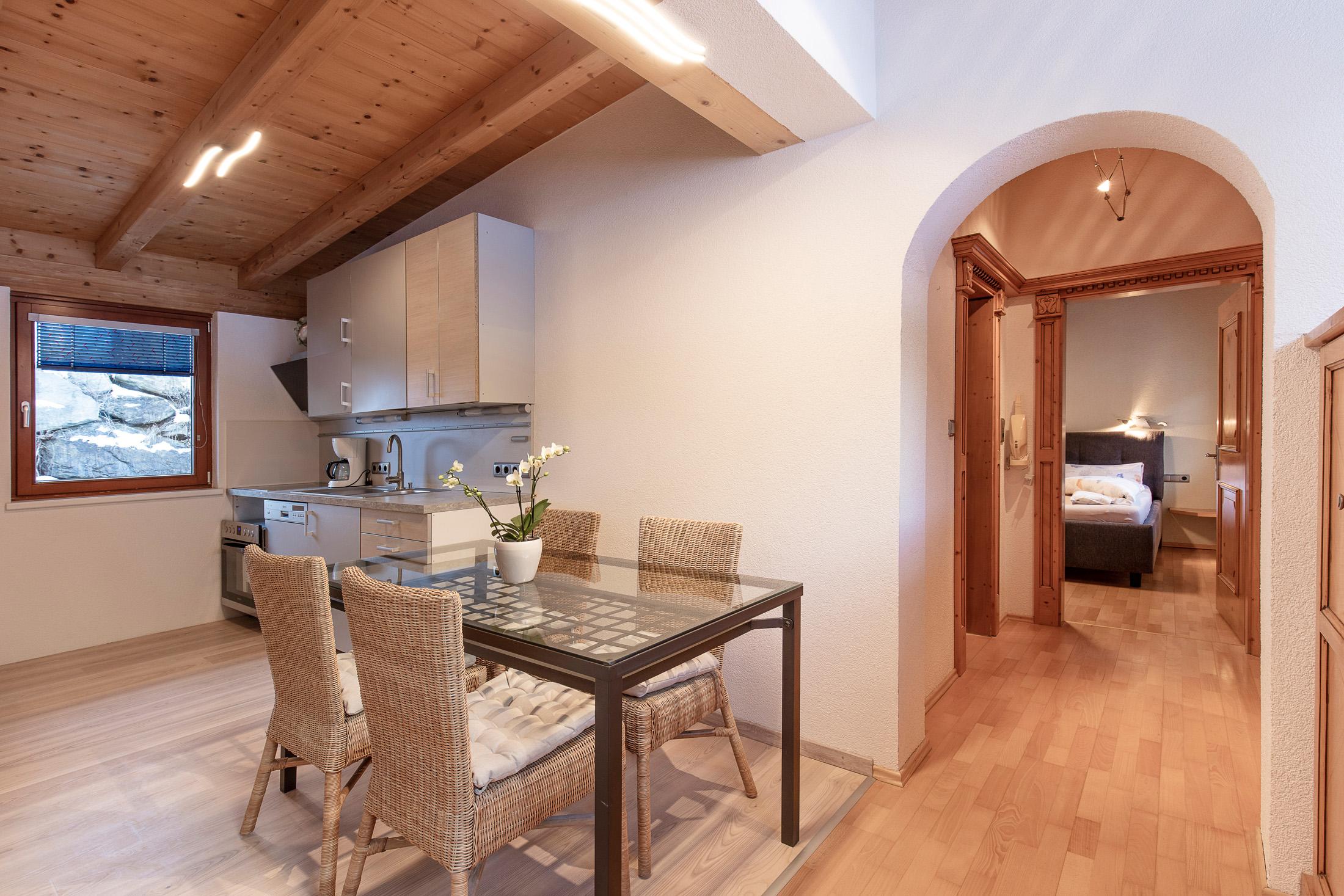 Appartement Nr. 9 umfasst ein Doppel-Boxspringbett, das auf Wunsch auseinandergeschoben werden kann, sowie ein angrenzendes Badezimmer mit Badewanne und WC. Im Wohnbereich befindet sich ein weiteres Boxspringbett, das ebenfalls auf Wunsch getrennt werden kann, und ein zusätzliches Badezimmer mit Dusche, WC und integrierter Dampfsauna. Der Wohnbereich ist außerdem mit einem Sofa und einer Essecke ausgestattet. Eine separate Küche mit Cerankochfeld, Backrohr, Geschirrspülmaschine, Mikrowelle, Kühlschrank mit Gefrierfach, Kaffeemaschine, Wasserkocher und vielem mehr ergänzt die Ausstattung. In allen Zimmern steht Kabel-TV zur Verfügung.