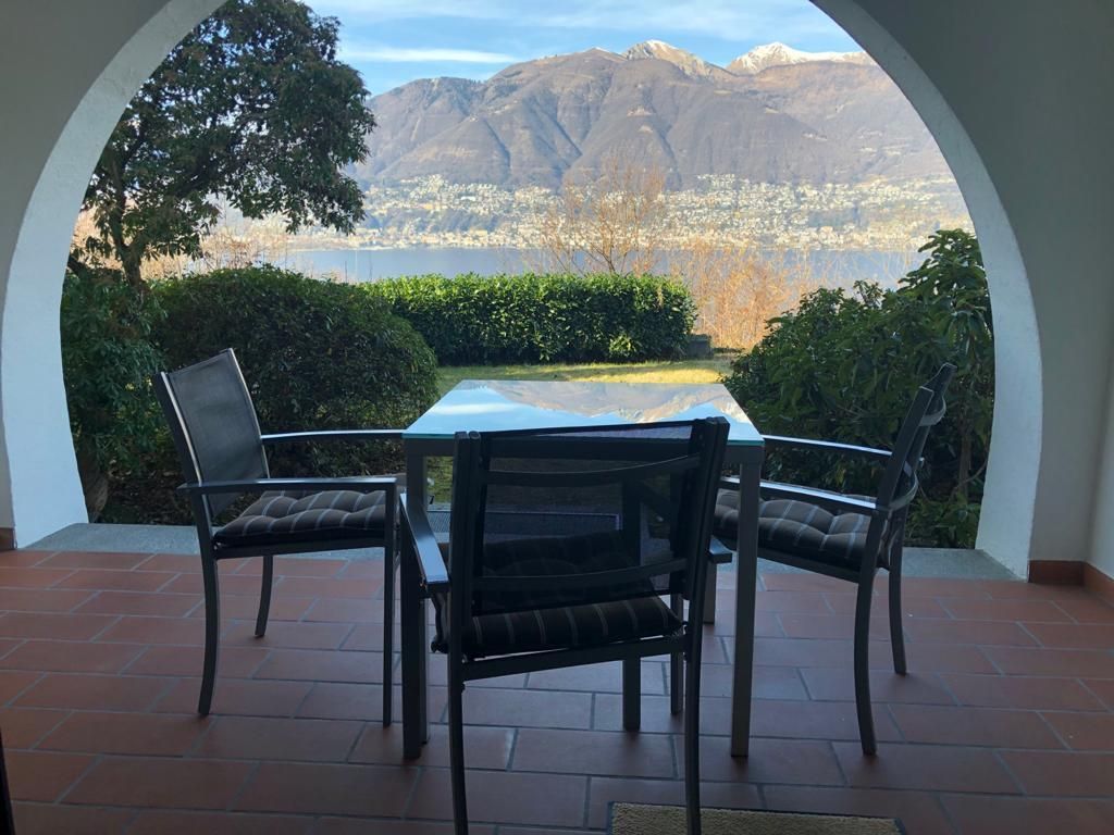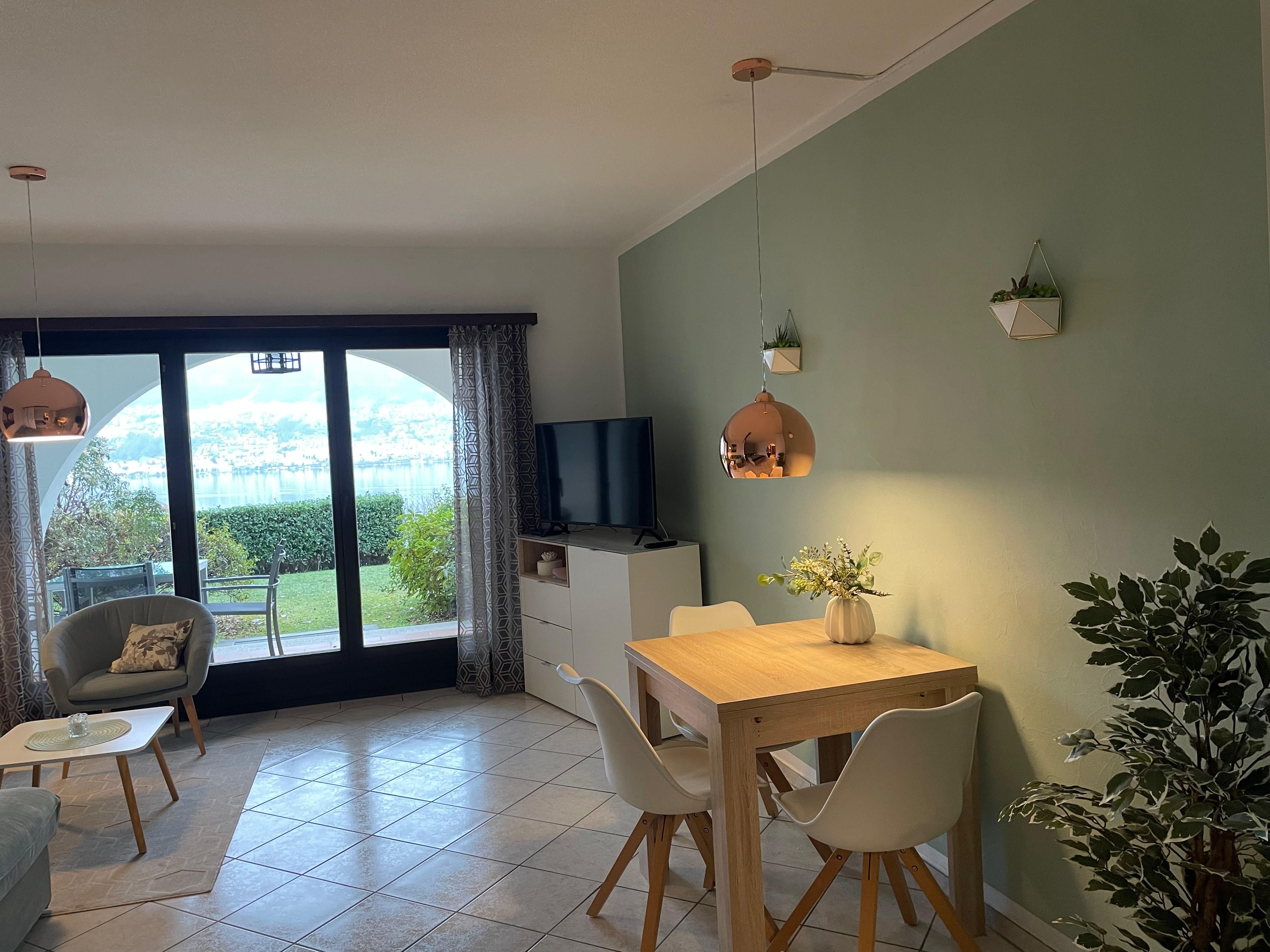 Erdgeschosswohnung mit großzügiger Terrasse und Gartenanteil.- Wunderbarer Ausblick auf den Lago Maggiore und die Tessiner Bergwelt.