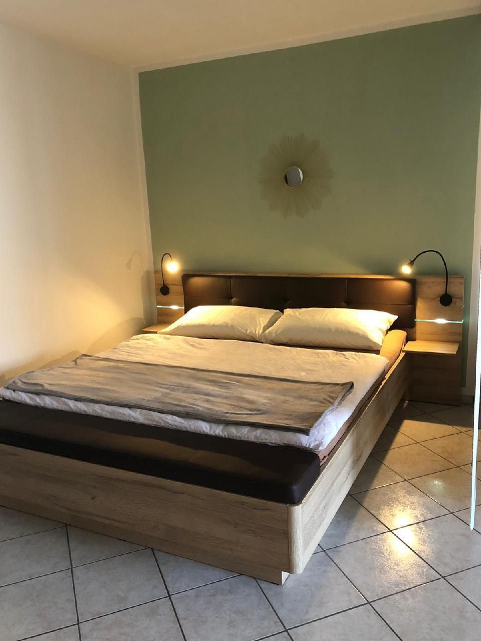 1-Zimmer Wohnung 45qm, kombinierter Wohn- und Schlafbereich mit zwei Betten, Sofa, Smart-TV mit Radio. Terrasse mit Seeblick.