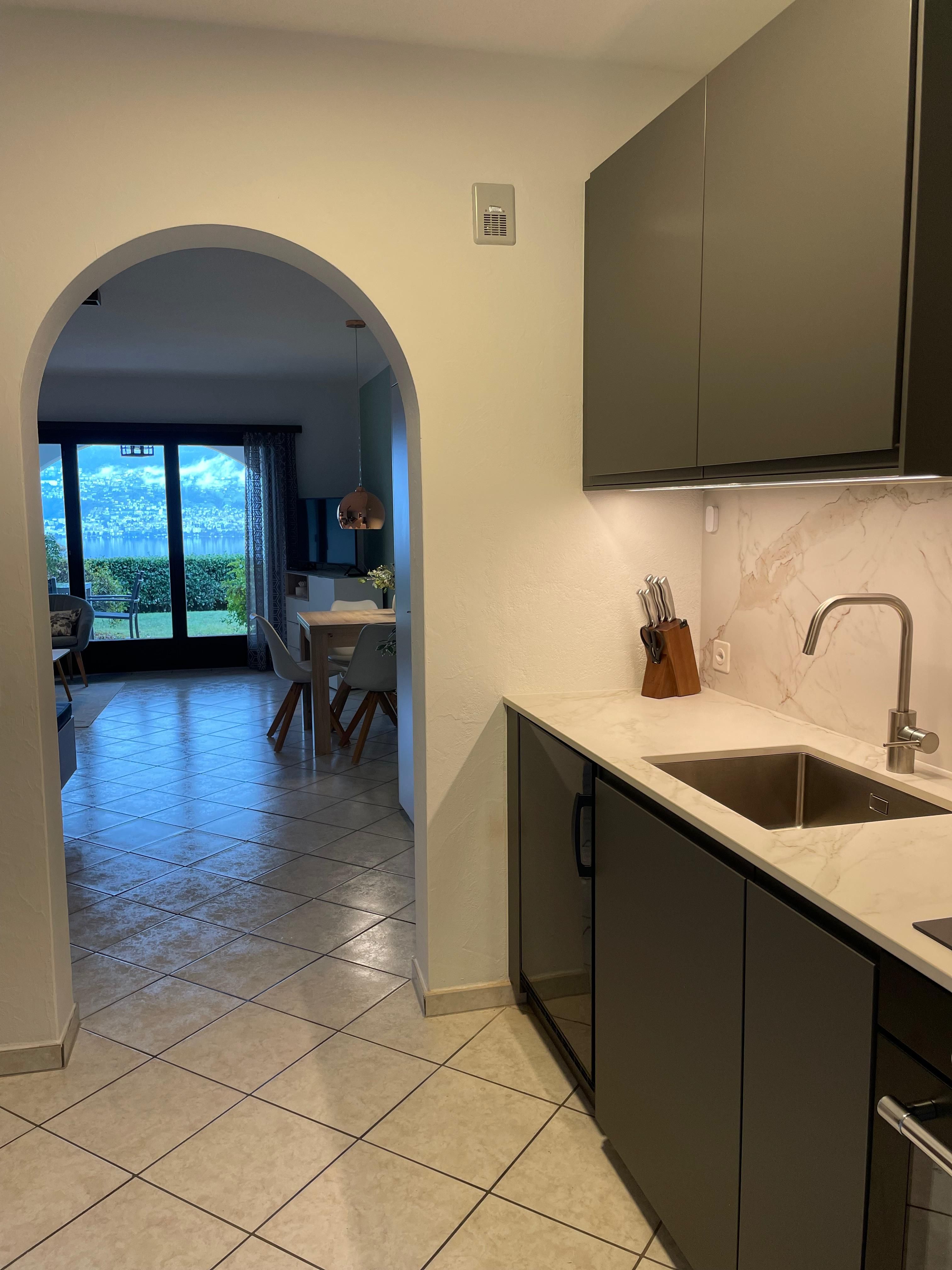 Geschmackvolle und liebevoll neu gestaltete und möblierte Wohnung. Sie besticht durch ihre Lage im untersten Haus der Residenz. Dadurch ist sie absolut ruhig, gleichwohl sind Liegewiese und Swimming Pool nur ein paar Schritte entfernt.