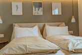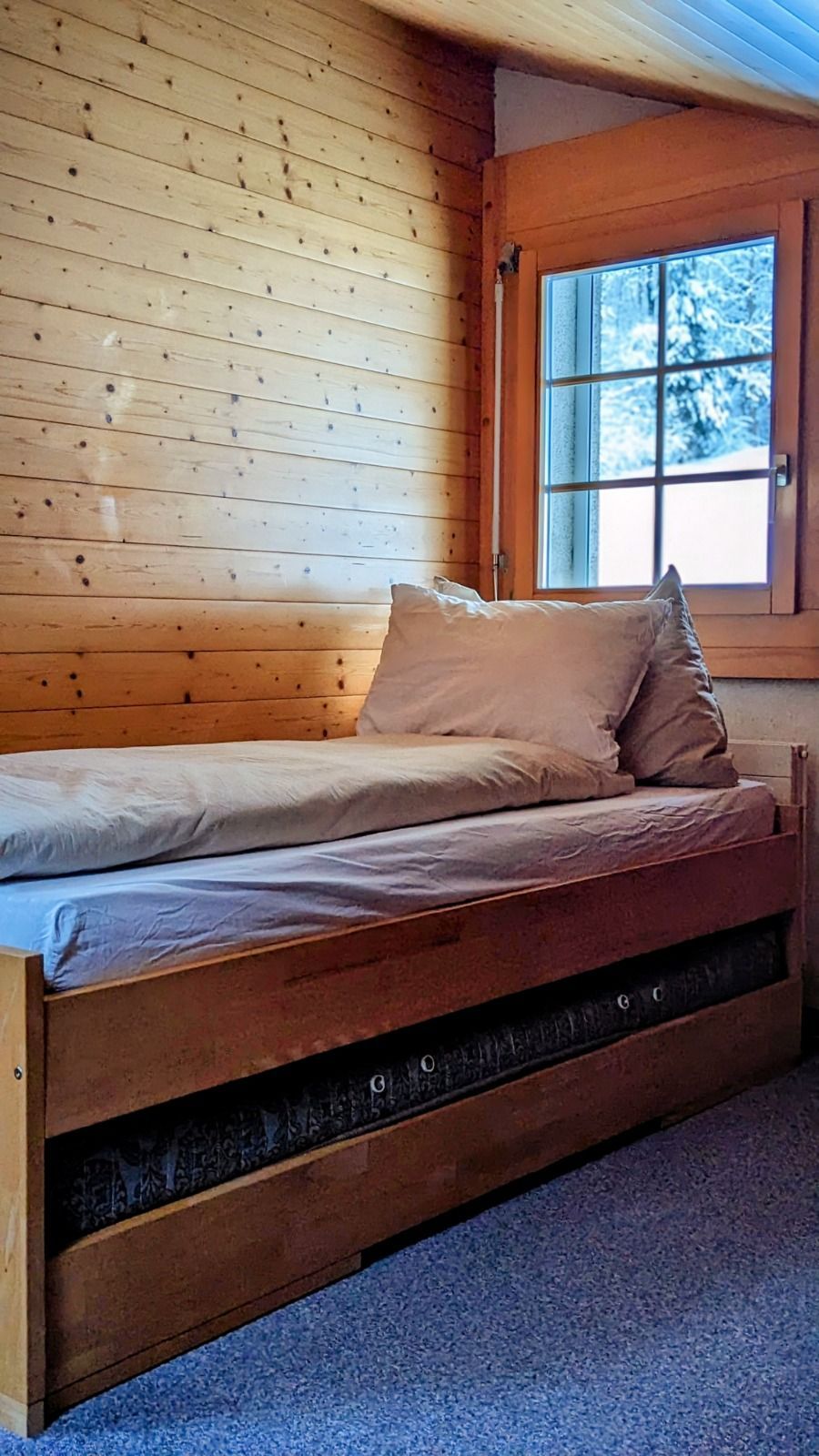 Es sind zwei Schlafzimmer vorhanden. Eines mit einem Doppelbett (160x200) und ein Dachzimmer mit drei Einzelbetten (Zugang über eine steile Treppe).