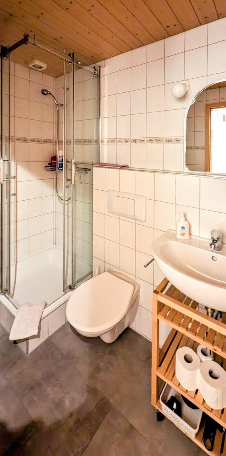 Eine gemütliche Dreizimmerwohnung für zwei bis sieben Personen mit 60m2. Die Wohnung ist im 2. Stock (Westseite) des Hauses. Zur Wohnung gehört eine Gartenveranda, welche jedoch nicht direkt an die Wohnung angeschlossen ist. Der Zugang zu der Veranda ist über den Haupteingang des Hauses gewährleistet.