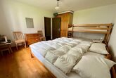 Im Inneren wartet die Wohnung mit einer Ausstattung auf, die keine Wünsche offenlässt. Die Küche ist mit einem Kühlschrank, Geschirrspüler, Backofen, Mikrowelle, Kaffeemaschine und einem Wasserkocher voll ausgerüstet. Für besondere kulinarische Erlebnisse sorgen ein Racletteofen und ein Fondue Caquelon. Das Schlafzimmer ist mit einem gemütlichen Doppelbett und einem Hochbett ausgestattet. Falls Bedarf für weitere Schlafmöglichkeiten besteht, stehen im Wohnzimmer zwei zusätzliche Einzelbetten zur Verfügung. Für Familien mit kleinen Kindern sind zwei Tripp Trapp-Stühle vorhanden und auch zwei Babybetten inkl. Matratze, Decke und Bettwäsche können dazugemietet werden.