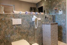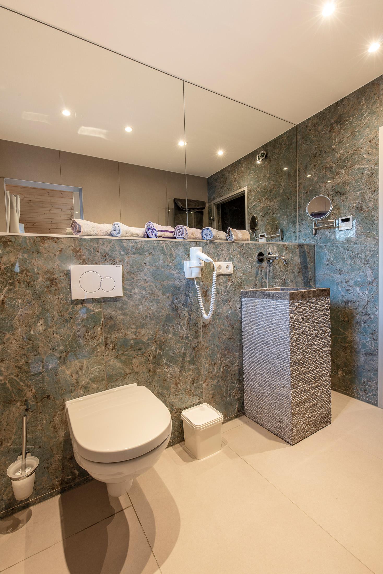 Appartement Nino: 1 Doppelzimmer mit Kabel TV, 1 Badezimmer mit Dusche mit integrierter Dampfsauna und WC, separate Essecke mit Kabel TV und einem Einzelbett für die 3. Person, voll ausgestattete Küche, Balkon, Größe: ca. 33 m²