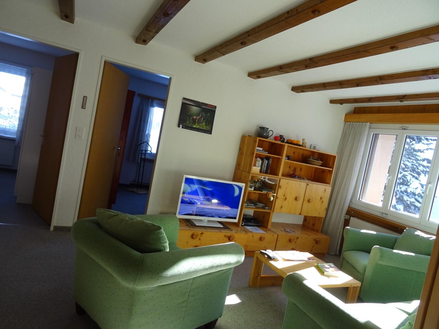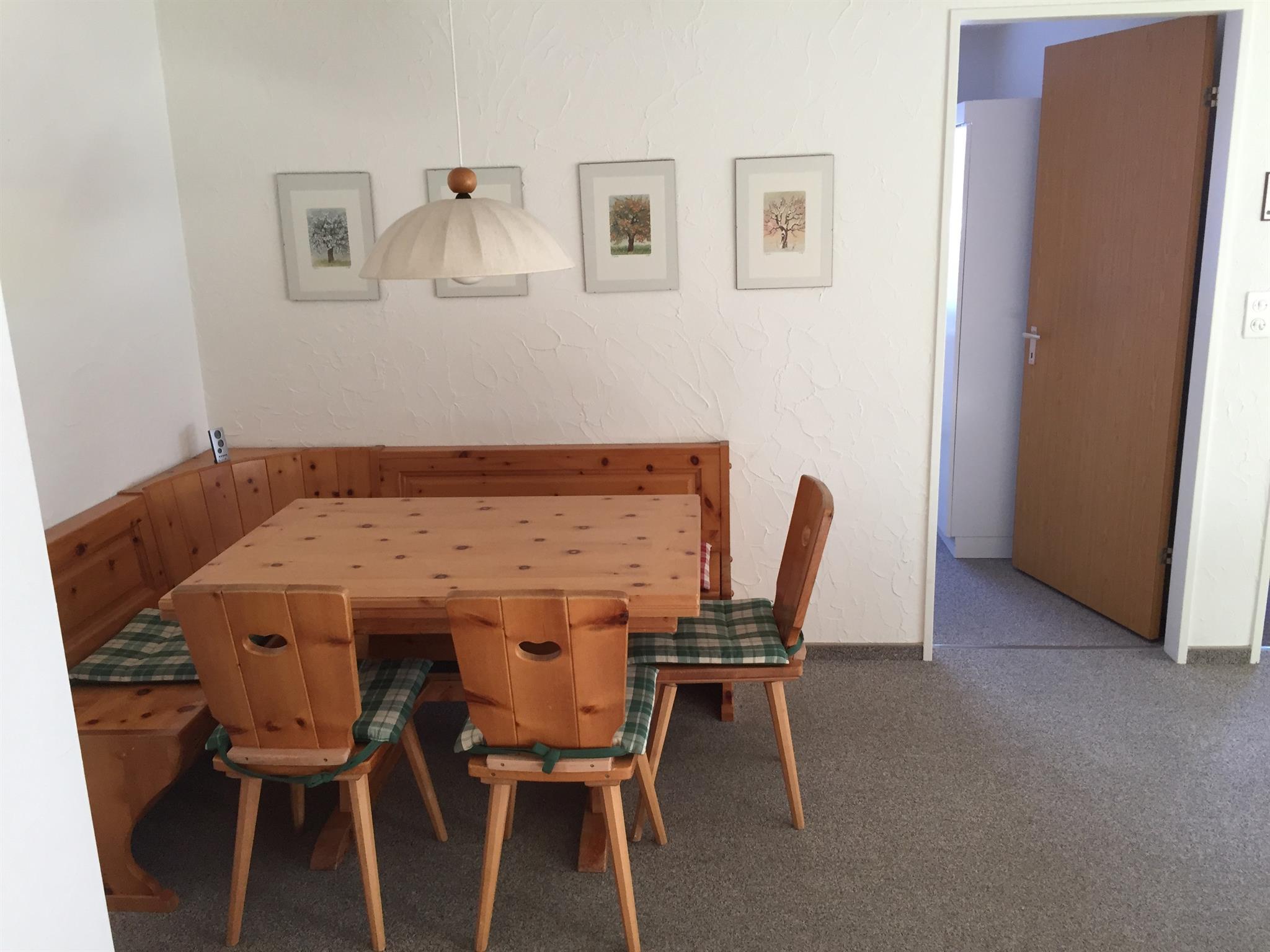 3 Zimmerwohnung für 6 Pers. im Mehrfamilienhaus 2. OG mit 75m2. 1 Schlafzimmer mit Doppelbett und 1 Schlafzimmer mit 2 Kajütenbetten. Bettwäsche, Küchentücher und Frottéewäsche vorhanden. Separate Küche mit Backofen, Kühlschrank, Geschirrspülmaschine und Kaffeemaschine. Bad, Duschkabine und WC in einem Raum. Balkon, Parkplatz und Platz in Einstellhalle. Fernseher, Radio. Haustiere nicht erlaubt. Nur Nichtraucher erlaubt. DVD und CD. Skiraum zur Mitbenützung.