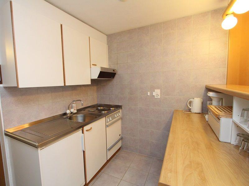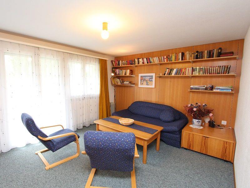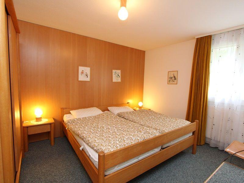 3 Zimmerwohnung ca. 65m2. 2 Schlafzimmer mit 2 Einzelbetten, 1 Doppelbett und ein Sofabett, insgesamt 5 Betten. Küche in Wohnzimmer integriert mit Backofen, Kühlschrank, Geschirrspüler und Kaffeemaschine. Badewanne mit Duschvorrichtung/WC. Haustiere nicht erlaubt. TV. Terrasse und Parkplatz. Kompostierung möglich. Garage auf Anfrage. Kinderspielplatz, Lift, Waschmaschine, Trockner, Skiraum und Tischtennisraum zur Mitbenutzung. Telefon beim Hauswart 16.00 - 18.00 h.