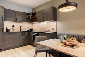 Peak 4 NEUES Appartement (ca. 50 m²) besteht aus 1 Doppelzimmer, 1 Badezimmer mit Dusche/WC, eine vollausgestattete Wohnküche (Cerankochfeld, Backofen, Mikrowelle, Geschirrspülmaschine, Kühlschrank mit Tiefkühlfach, Kapsel-Kaffeemaschine, Wasserkocher, Toaster uvm.) und gemütlichem, ausziehbarem Sofa (Schlafmöglichkeit für die 3. und 4 Person.), Flat-TV.