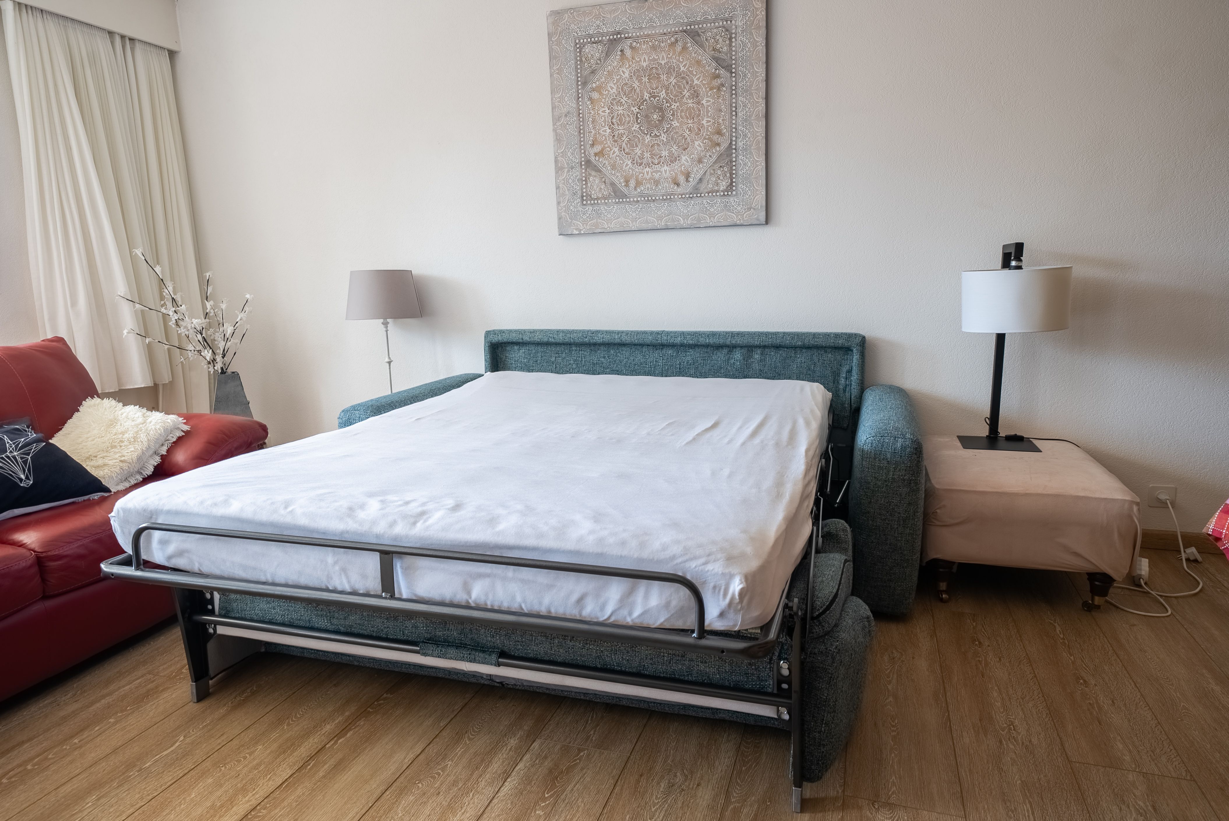 - 4 Erwachsene können problemlos übernachten, das Wohnzimmer ist durch eine breite Schiebetür leicht isoliert und mit Stauraum ausgestattet, und das Sofa bietet ein 140 cm breites Bett mit einer echten Matratze (siehe Foto).