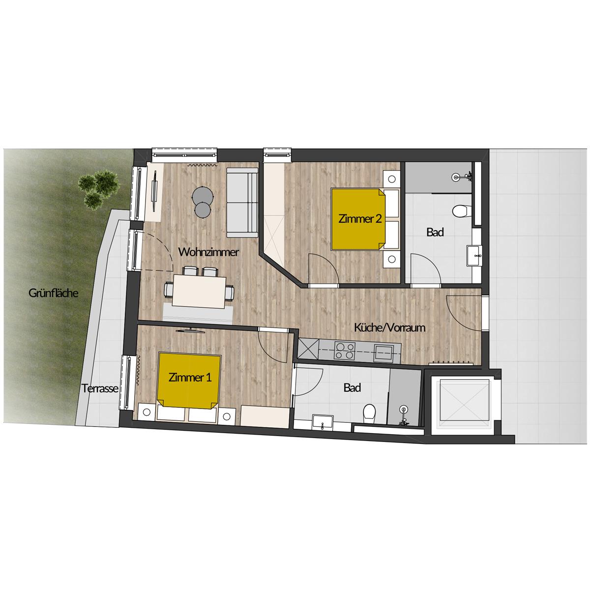Peak 3 NEUES Appartement (ca. 73 m²) besteht aus 2 Doppelzimmer, 2 Badezimmer mit Dusche/WC, eine vollausgestattete Wohnküche (Cerankochfeld, Backofen, Mikrowelle, Geschirrspülmaschine, Kühlschrank mit Tiefkühlfach, Kapsel-Kaffeemaschine, Wasserkocher, Toaster uvm.) und gemütlichem, ausziehbarem Sofa (Schlafmöglichkeit für die 5. und 6 Person.), Flat-TV. Genießen Sie das Panorama der Ötztaler Alpen auf unserer möblierten Terrasse.