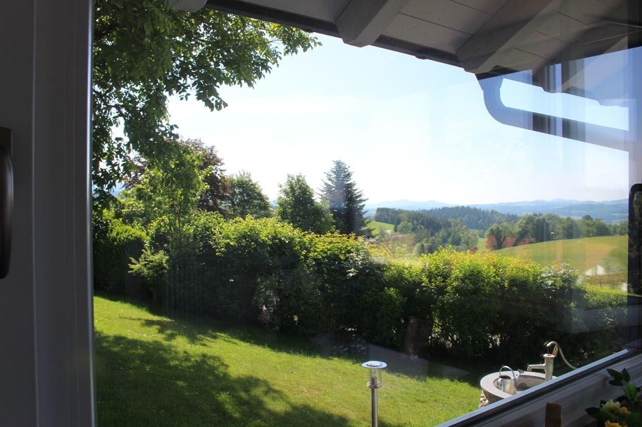 Unsere Vier-Sterne-Ferienwohnung ist mit einer großen Sauna ( direkter Freiluftzugang in den Garten möglich) und einer Dampfdusche ausgestattet. Ein freistehender Südhang ermöglicht einen wunderschönen Ausblick in Richtung Österreich. Die Ferienwohnung hat keine direkten Nachbarn. Der Vermieter wohnt im Nebengebäude. Das Objekt befindet sich in ruhiger Lage. Die Gegend eignet sich wunderbar für Fahrradtouren. Fahrräder können vor Ort, Z.B. von der Gemeinde, ausgeliehen werden.