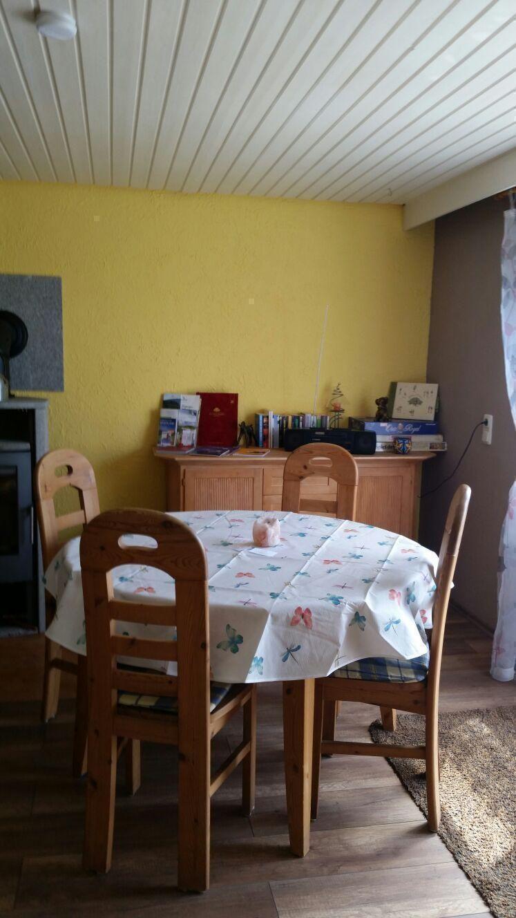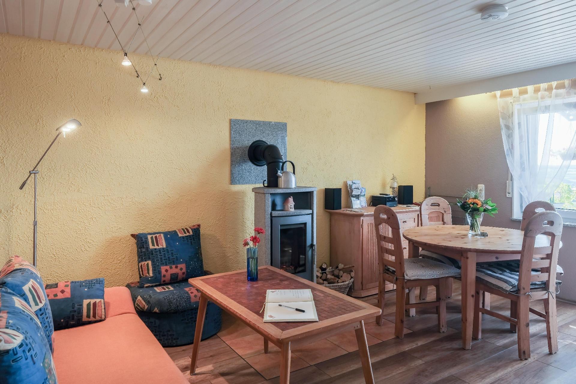 Die familienfreundliche Ferienwohnung ist für zwei bis fünf Personen, davon max. 3 Erwachsene, geeignet. Sie umfasst ein neu renoviertes Schlafzimmer mit Doppelbett (180 x 200 cm) und Einzelbett (90 x 200 cm) sowie eventuell einem Zustellbett, eine Küche, ein neu renoviertes Wohnzimmer mit ausziehbarem Sofa (150 x 200 cm) und ein Bad mit Badewanne mit Duschvorrichtung und WC. Die komplett eingerichtete Küche bietet Kühlschrank mit Gefrierfach, Spülmaschine, Wasserkocher, Kaffeemaschine, Toaster, Mikrowelle, Geschirr und Besteck. Außerdem verfügt die Wohnung über Radio, Sat.-TV und Ölzentralheizung mit Heizkörpern in allen Räumen, außer der Küche, und einem Kaminofen für romantische Abende. Handtücher, Bett- und Tischwäsche werden gestellt. Endreinigung und WLAN ist im Preis inklusive. Haustiere sind auf Anfrage gegen Gebühr zugelassen.